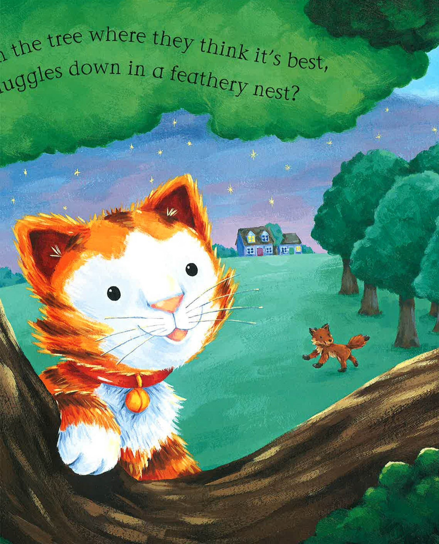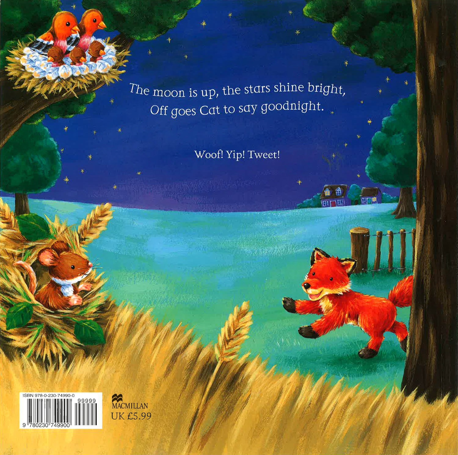 Join an adorable ginger cat as she sets off to say goodnight to all her animal friends. From the barn owl swooping overhead to the rabbits safe in their hutch, there are all sorts of familiar pets and wild animals in this gorgeous book. Children will love to stroke the velvety soft-to-touch animals on every page and join in calling out their noises!