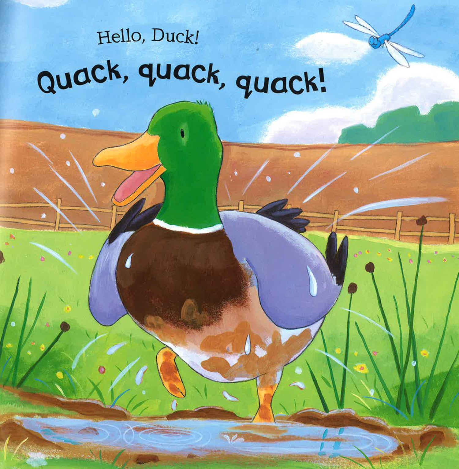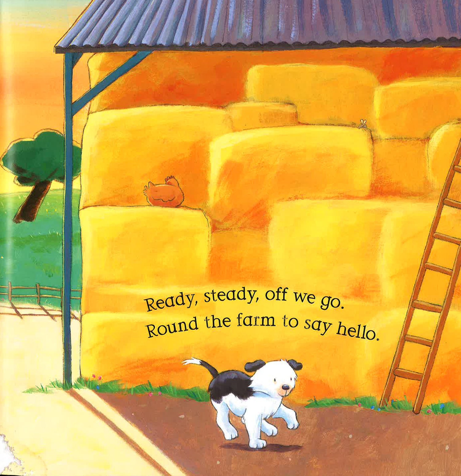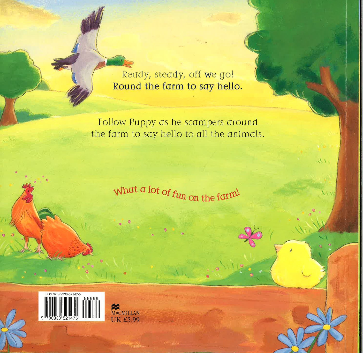 A noisy, fun-filled farmyard adventure, with furry touch-and-feel animals on every page!Look who's hiding under those sticks. Say hello to the fluffy chicks. Follow the friendly puppy as he scampers around the farmyard saying hello to all the animals. Toddlers will love to stroke the soft, velvety animals and to join in making their noises.