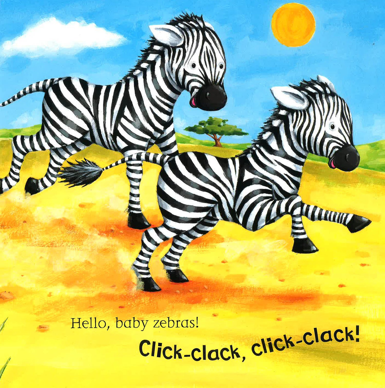 From the hungry baby giraffe to the baby elephant playing in the mud, toddlers will love saying hello to all the animals and joining in with the noises in this fun savannah story.