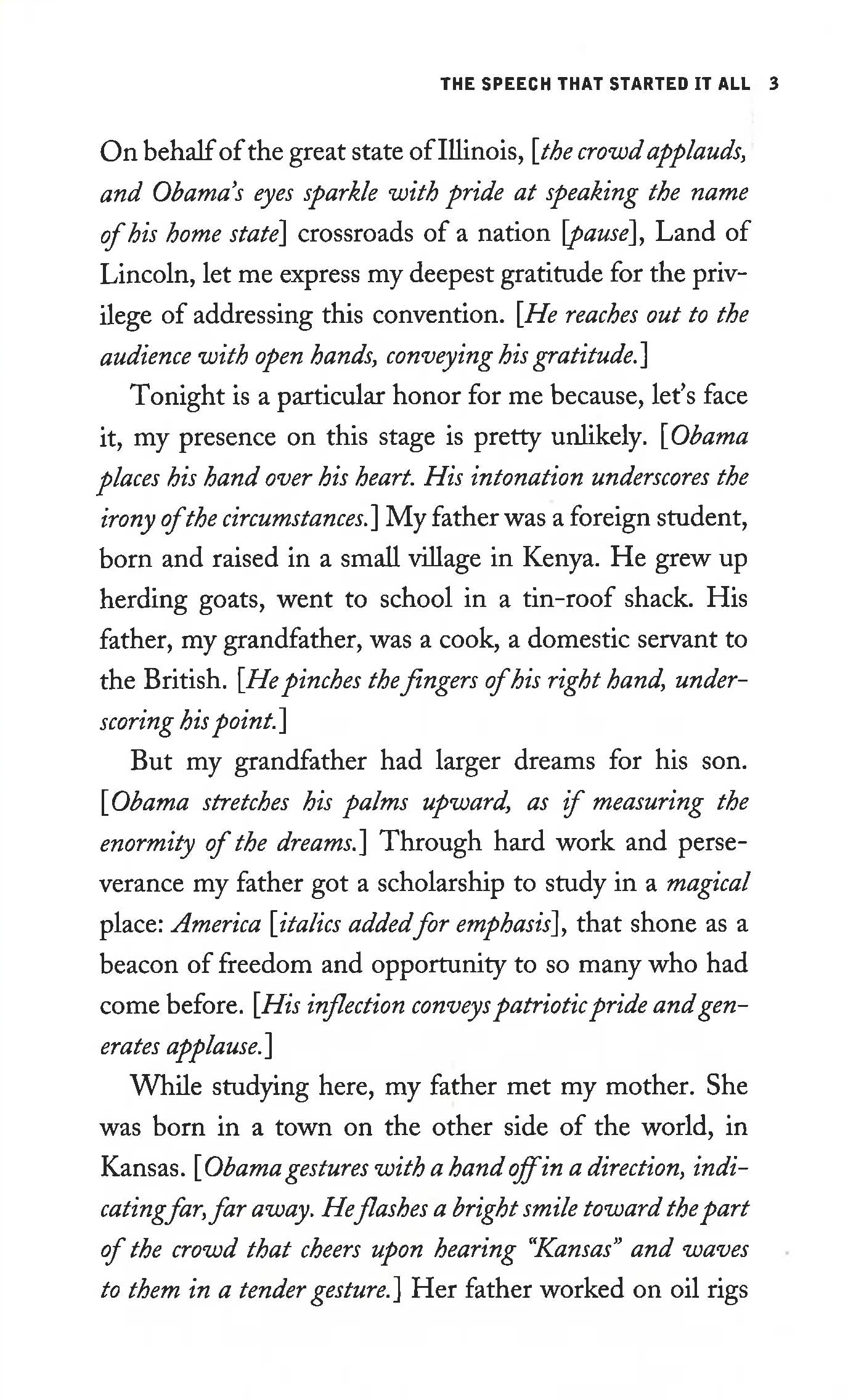 Updated to include speeches on the death of bin Laden, the Arab Spring, and other historic moments on the podiumIn speech after speech, Barack Obama fires up enthusiastic supporters with his inspiring vision, rousing rhetoric, and charismatic presence. His outstanding communication skills gave rise to an unprecedentedpolitical movement and launched him to the top of the world political stage.