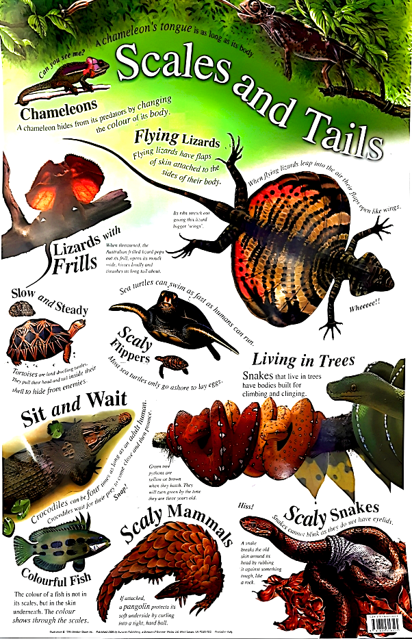 Wall Chart Brief desription with picture of animals wil scales and tails.