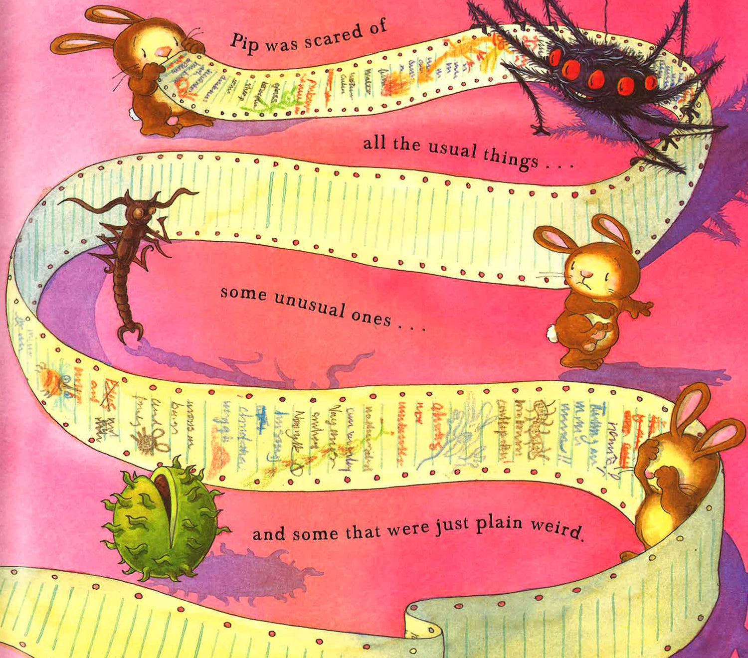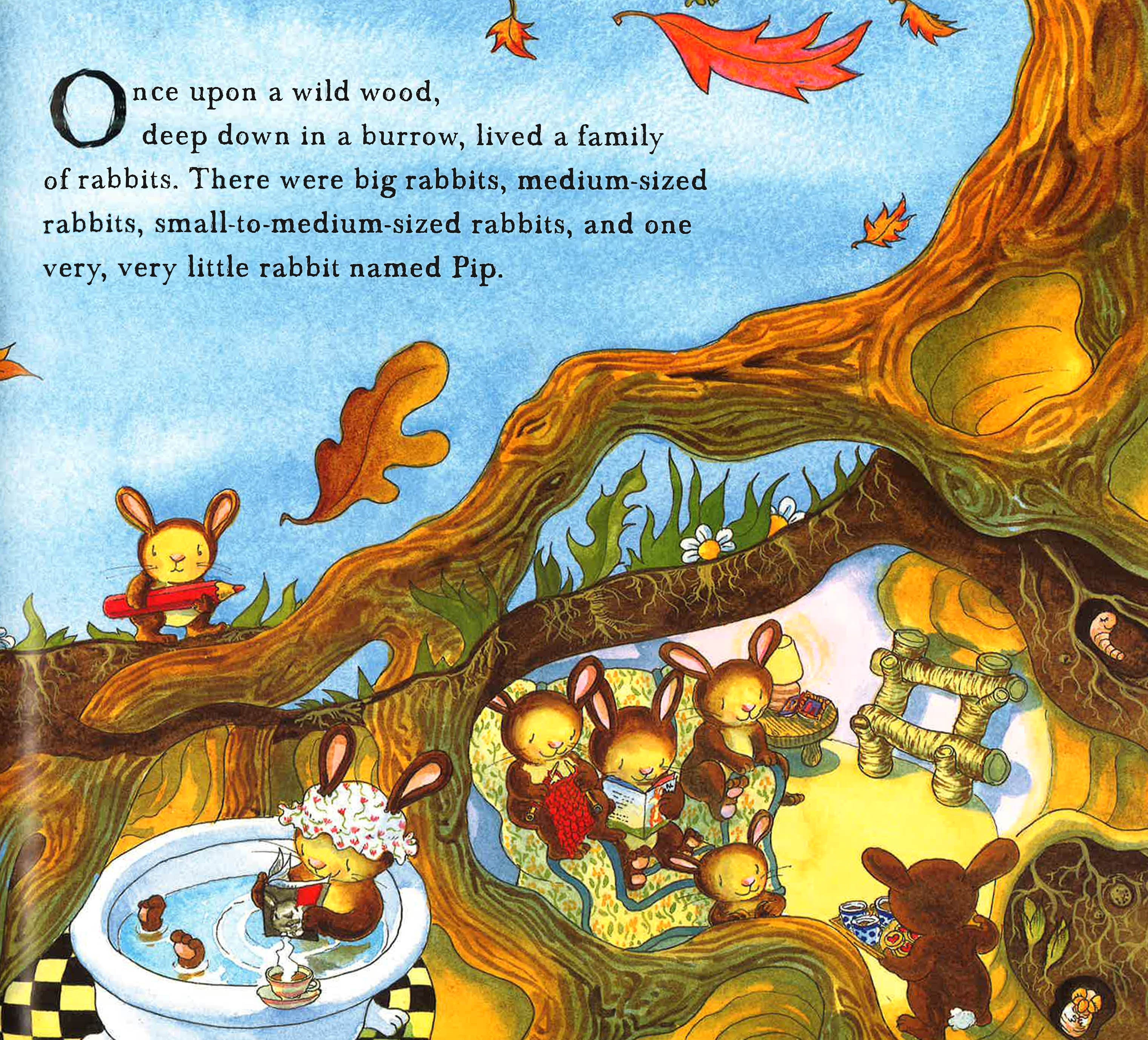 Pip the rabbit is afraid of lots of things - until he gets lost in the woods, right in front of the Scariest Thing of All! But when Pip confronts his fears, he finds courage in the most unlikely of places: inside himself. Debi Gliori's beautiful illustrations and fanciful imagination bring this comforting story to life.
