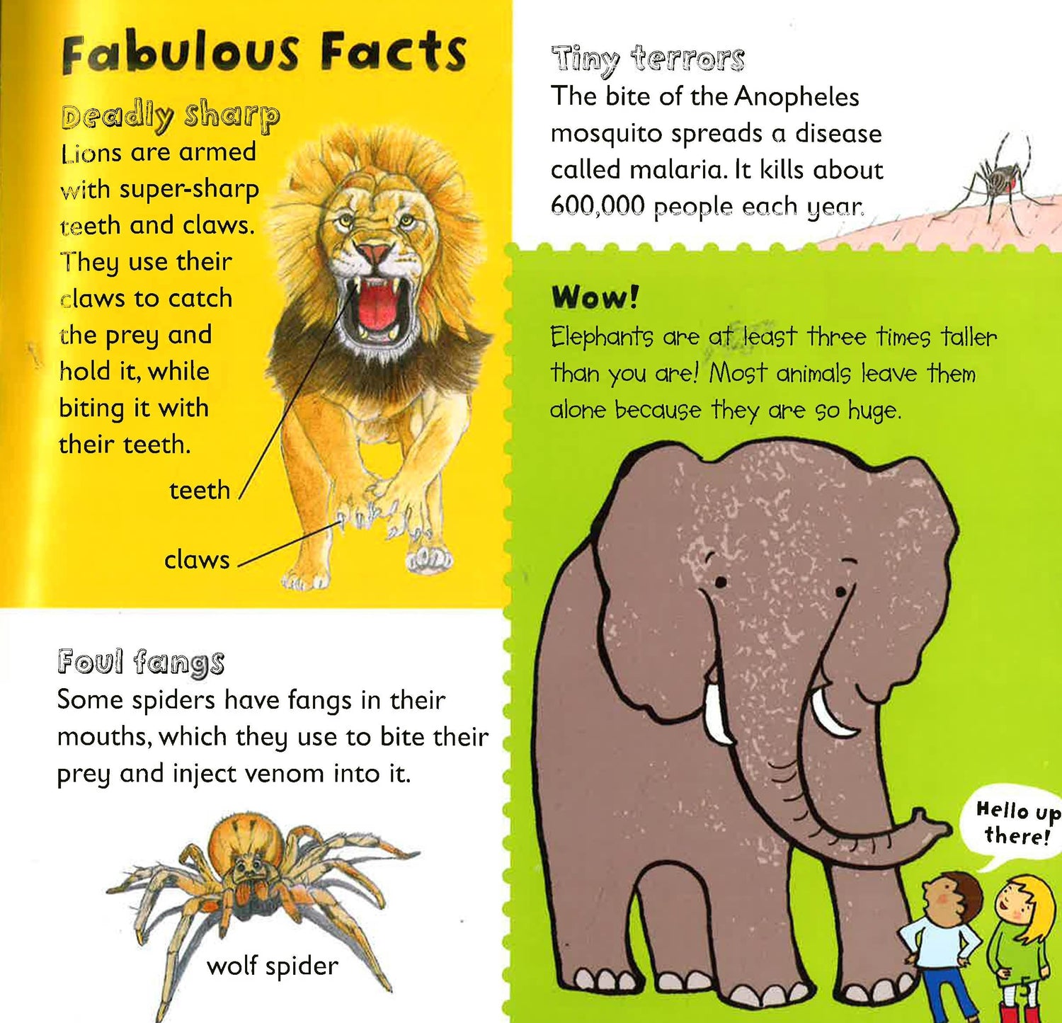 Ladybird's First Fabulous Facts is an illustrated non-fiction series for 3-5 year olds. Fun and fascinating facts engage young children and bring their favourite interests, hobbies and obsessions to life. Scary Animals takes a look at the world's biggest, poisonous and above all, scariest creatures! From poisonous jellyfish and snakes to man-eating big cats and bears, young readers will find out about the deadliest animals on the planet. Find out what to do if you come face-to-face with a bear, why you'll never run faster than a cheetah and where not to swim in Australia!