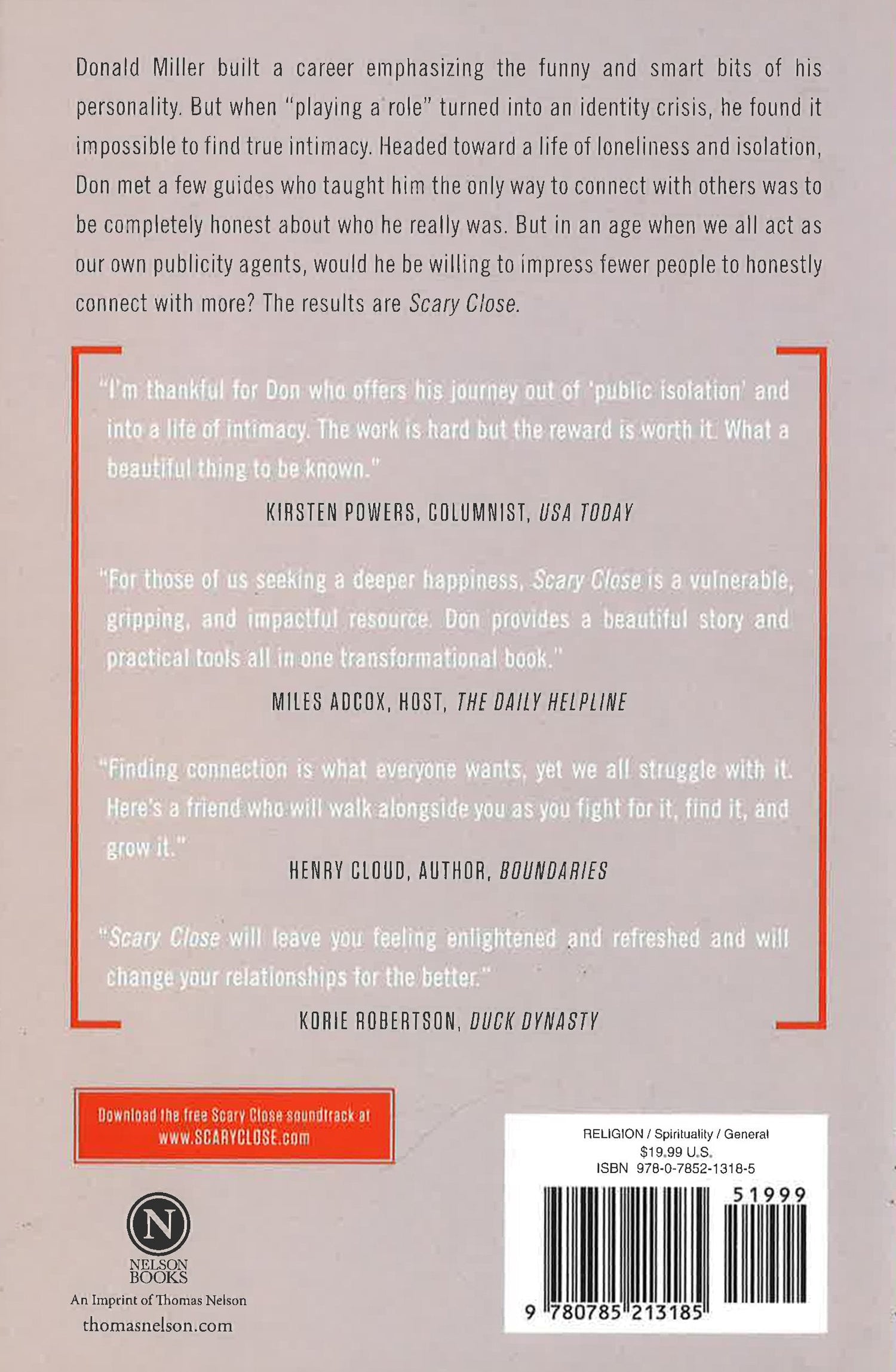 A New York Times Bestseller, Scary Close is Donald Miller at his best. From the author of Blue Like Jazz comes a story about finding the keys to a healthy relationship and discovering they are also the keys to a healthy family, a healthy career, and a healthy mind. And it all feels like a conversation with the best kind of friend: smart, funny, true, important. After decades of failed relationships and painful drama, Donald Miller decided he'd had enough. Impressing people wasn't helping him connect with anyone. He'd built a life of public isolation, yet he dreamed of meaningful relationships. So at forty years old he made a scary decision: to be himself no matter what it cost. Scary Close is a book about the risk involved in choosing to impress fewer people and connect with more, about the freedom that comes when we stop acting and start loving. It is a story about knocking down old walls to create a healthy mind, a strong family, and a satisfying career. And it all feels like a conversation with the best kind of friend: smart, funny, true, important.