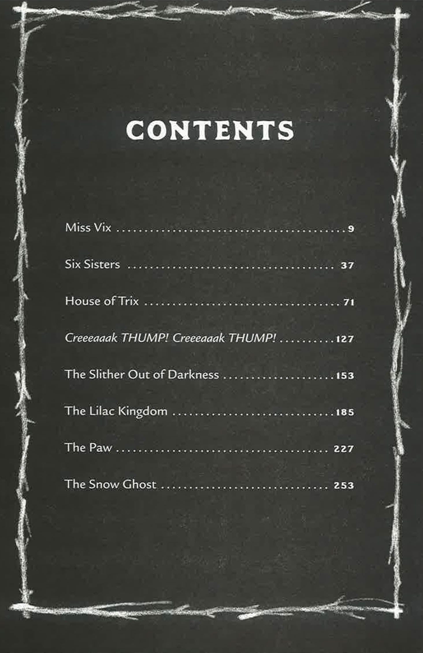 When Mia and Uly are separated from their litters, they discover a dangerous world full of monsters. In order to find a den to call home, they must venture through field and forest, facing unspeakable things that dwell in the darkness: a zombie who hungers for their flesh, a witch who tries to steal their skins, a ghost who hunts them through the snow . . . and other things too scary to mention.
