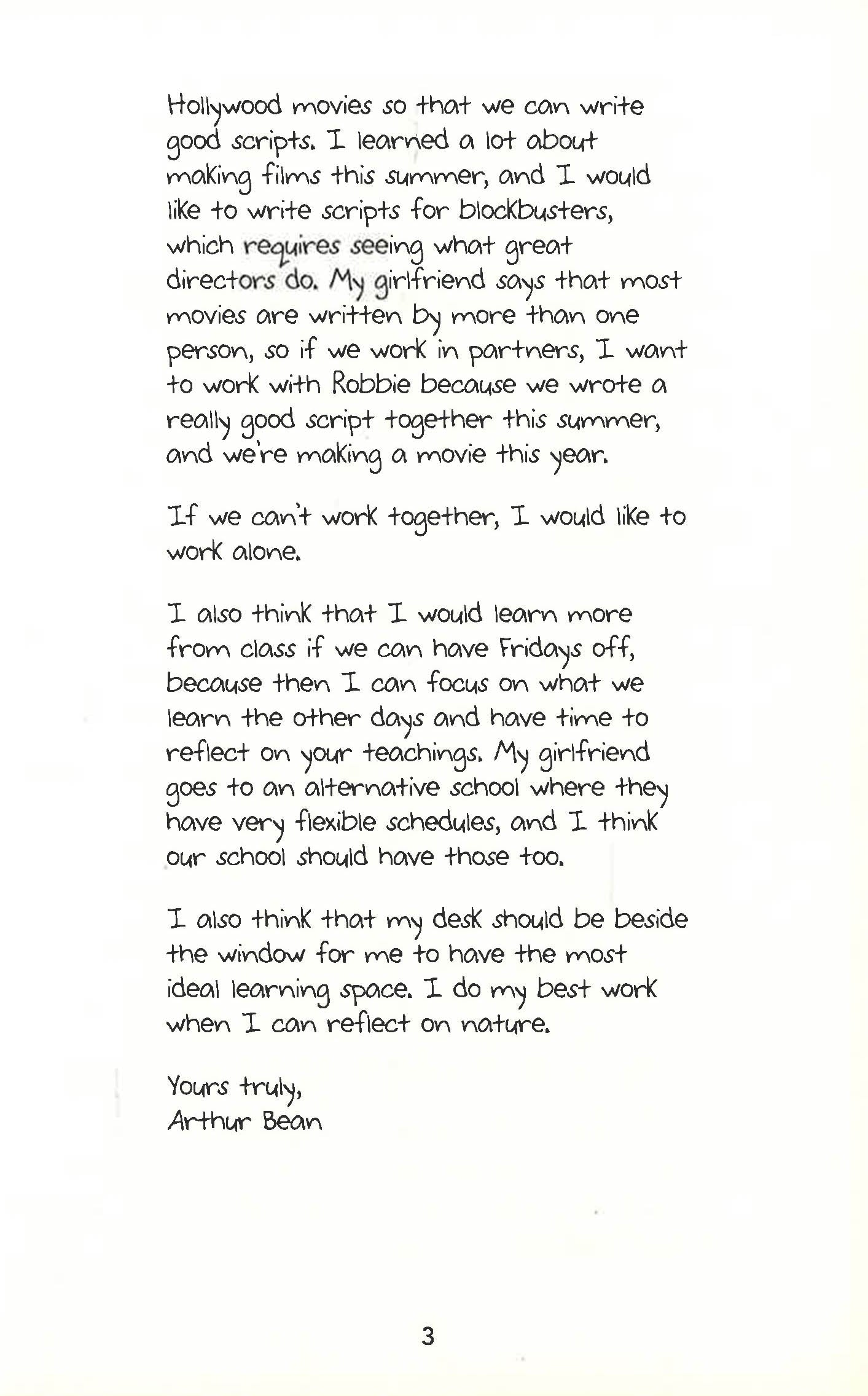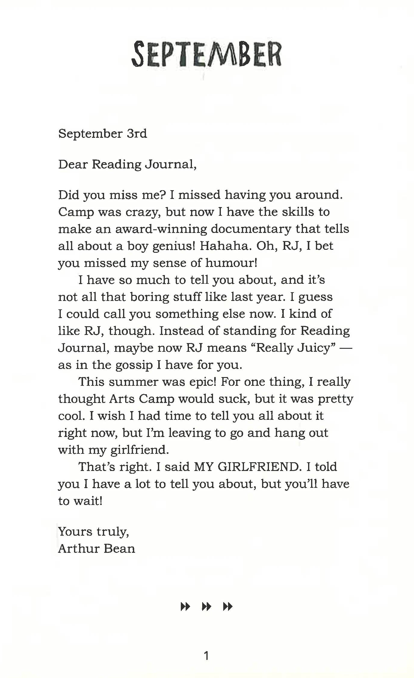 It's a new year for Arthur Bean which means new goals. He plans to have his own column in the school newspaper, save the environment, and write and direct an award-winning zombie film. All the while, he is going to be totally hilarious and devastatingly cool (in a geeky way). But sometimes Arthur's ambitions go a little too far... Arthur's genius and potentially award-winning thoughts and schemes are brought to life through emails, notes, doodles and texts.
