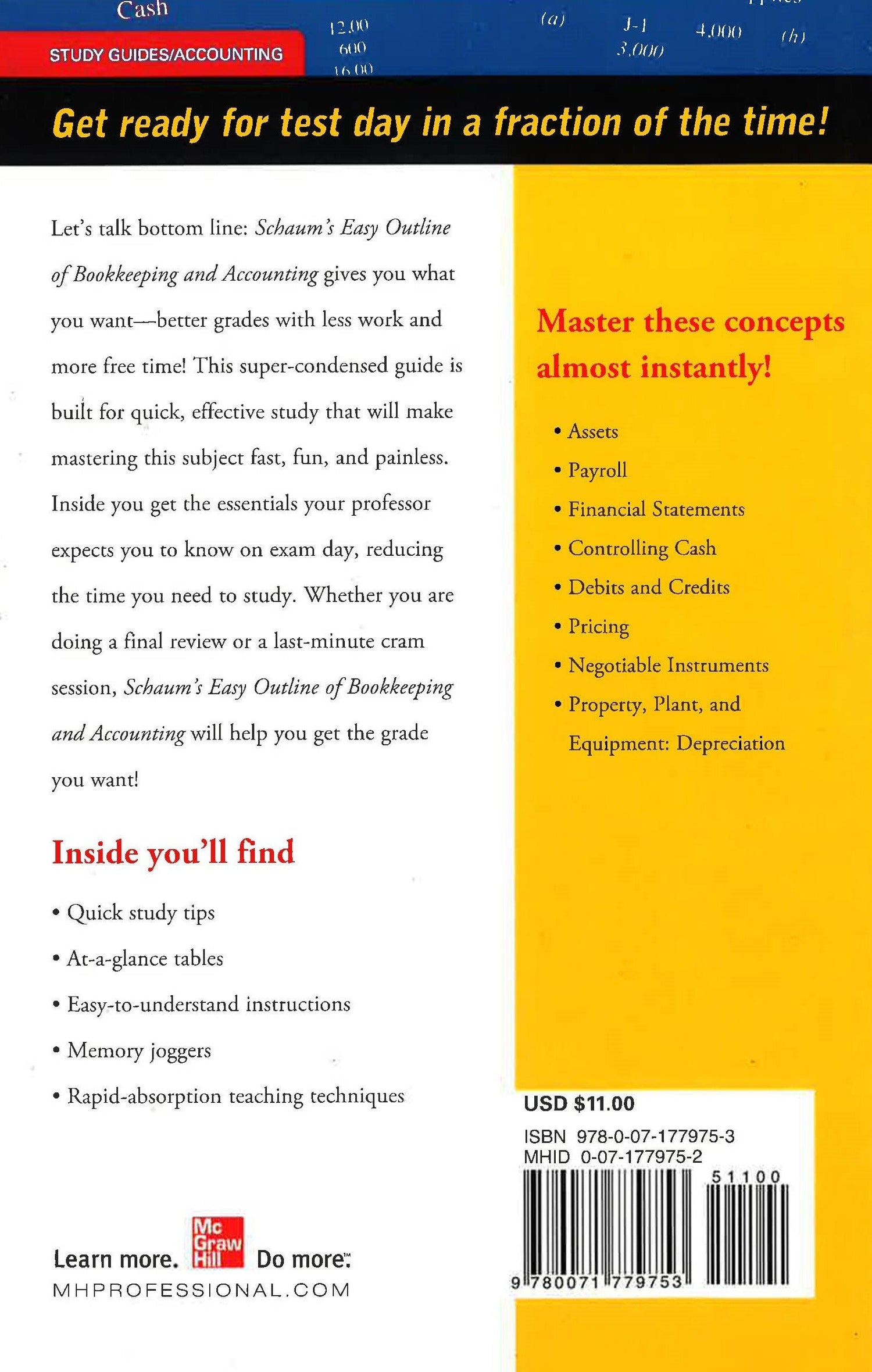 Schaum's Easy Outline of Bookkeeping and Accounting is a pared-down, simplified, and tightly focused review of the topic. With an emphasis on clarity and brevity, it features a streamlined and updated format and the absolute essence of the subject, presented in a concise and readily understandable form. Graphic elements such as sidebars, reader-alert icons, and boxed highlights stress selected points from the text, illuminate keys to learning, and give you quick pointers to the essentials.