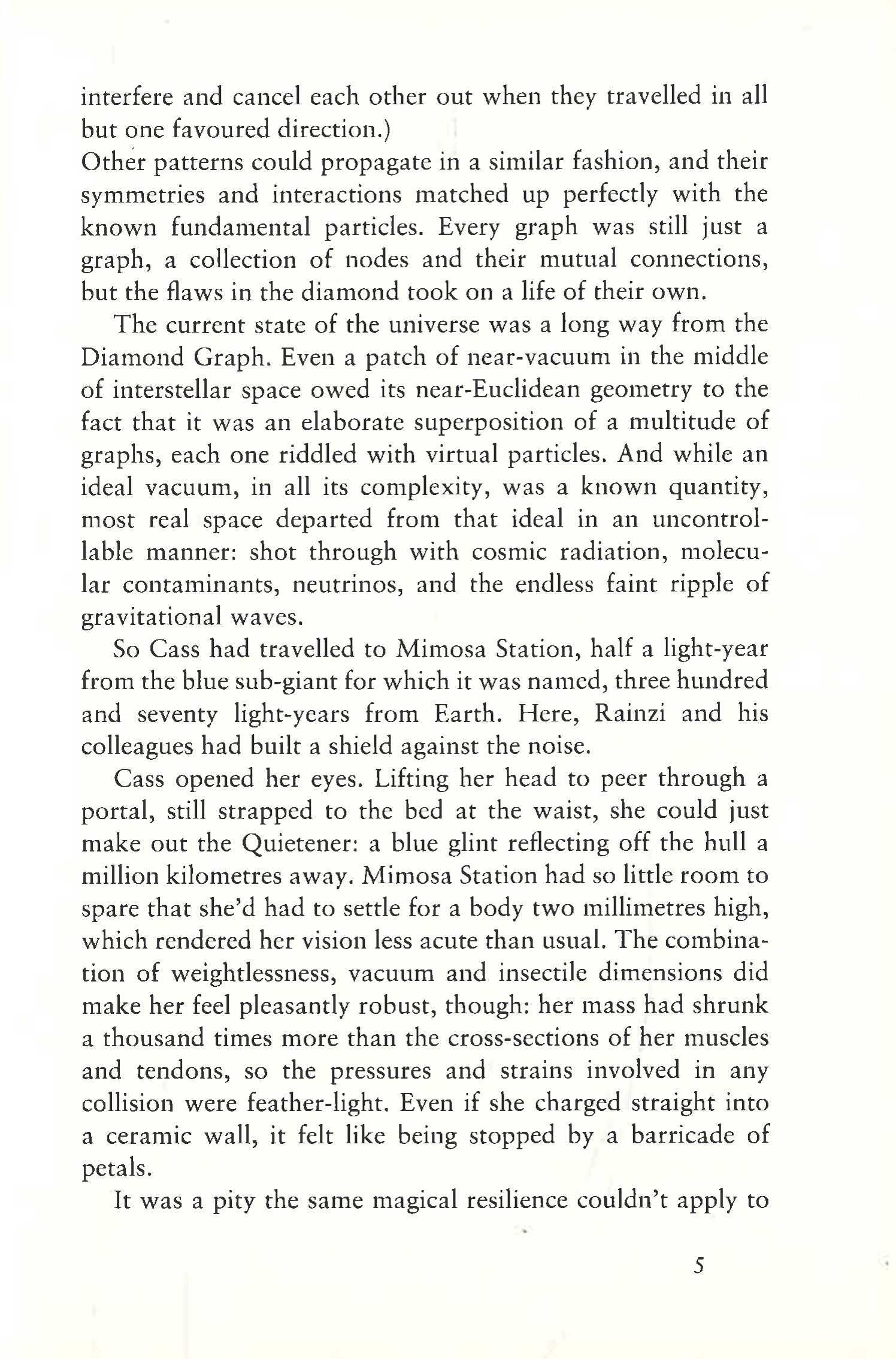 Cass has stumbled on something that might be an entirely different type of physics, and she's travelled three hundred and fifty light-years to Mimosa Station, a remote experimental facility, to test her theory. The novo-vacuum she creates is predicted to begin decaying the instant it's created, but even so short-lived a microscopic speck could shed new light on the origins of the universe.