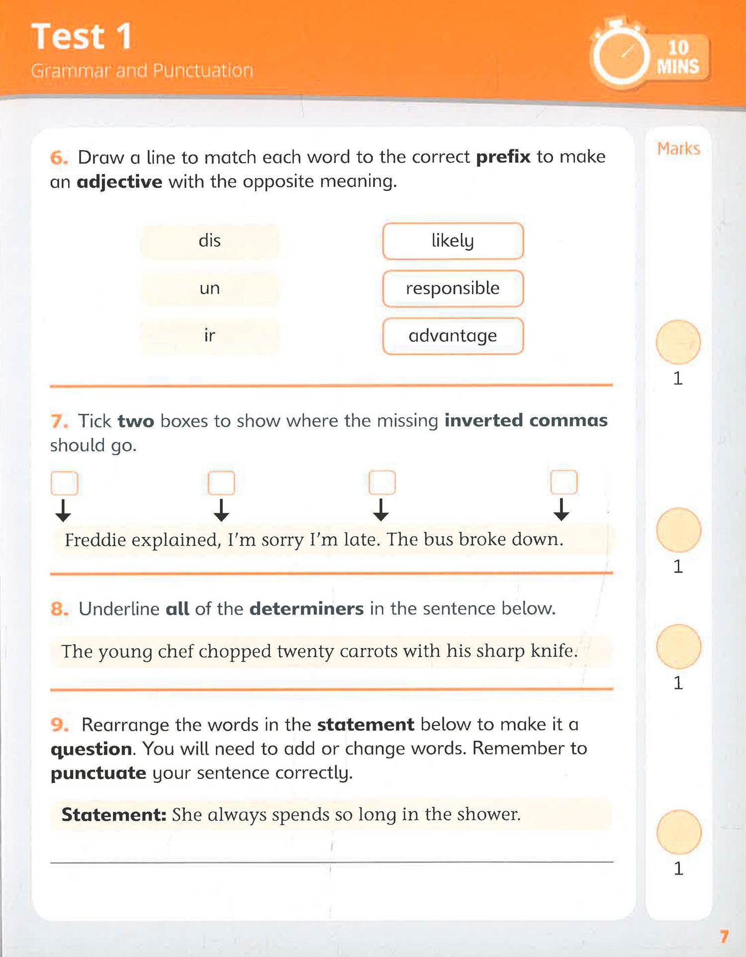 Just like the real thing - only shorter! This book offers 10 complete Grammar and Punctuation tests and 10 Spelling tests in a flexible format for use at any time of the day. Just like the real thing - only shorter! Help your child prepare for the SATS with these bite-sized National test papers. This book offers 10 complete Grammar and Punctuation tests and 10 Spelling tests in a flexible format for use at any time of the day. Question types and mark schemes match the format of the National tests and offer an authentic SATs experience. Spelling tests come with transcripts though online audio versions are also available. A handy progress chart is also supplied to give you some indication of the scores your child is likely to attain.