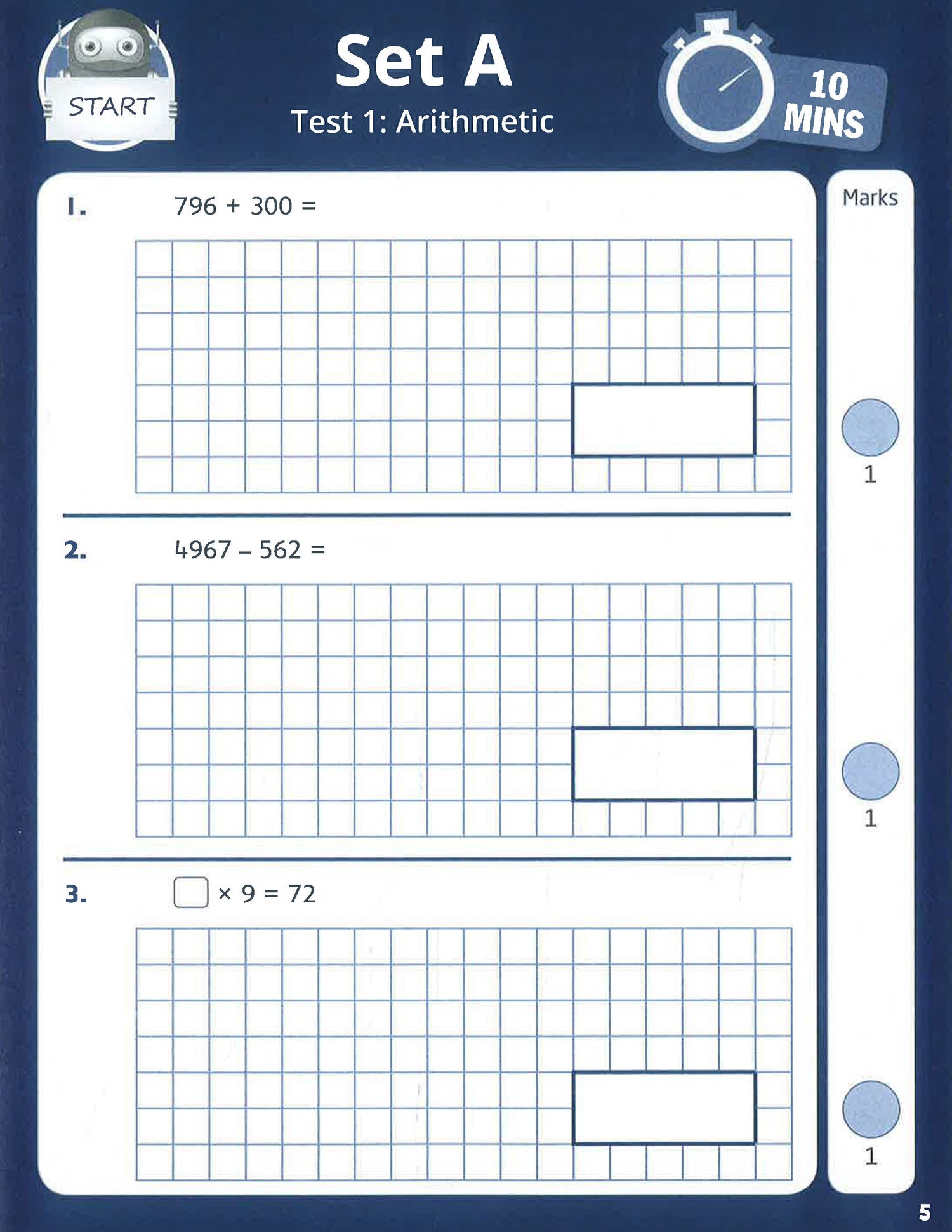 Just like the real thing - only shorter! Help your child prepare for the SATS with these bite-sized National test papers. This book offers 12 mini-tests - including Reasoning and Arithmetic papers. Question types and mark schemes match the format of the National tests and offer an authentic SATs experience, though the flexible format allows them to be used at any time of the day. A handy progress chart is also supplied to give you some indication of the scores your child is likely to attain. A skills check section will also help you to identify all of the key maths skills your child needs to be successful in the SATs tests.
