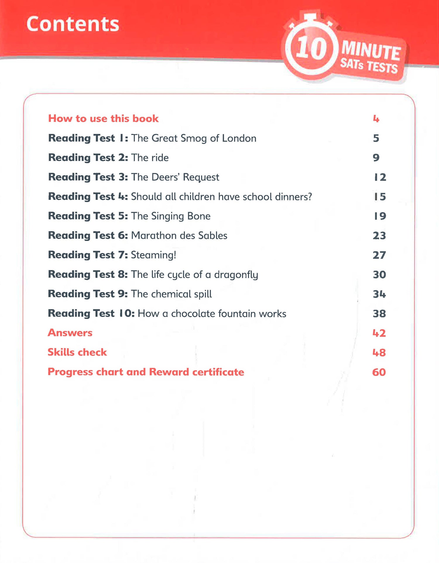 Just like the real thing - only shorter! Help your child prepare for the SATS with these bite-sized National test papers. This book offers ten complete mini-reading tests which include fiction, non-fiction and poetry texts. Question types and mark schemes match the format of the National tests and offer an authentic SATs experience, though the flexible format allows them to be used at any time of the day. A progress chart is also supplied to give you some indication of the scores your child is likely to attain, while a handy breakdown of all of the different question types in the Reading SATs tests will help you to identify your child's strengths and weaknesses.