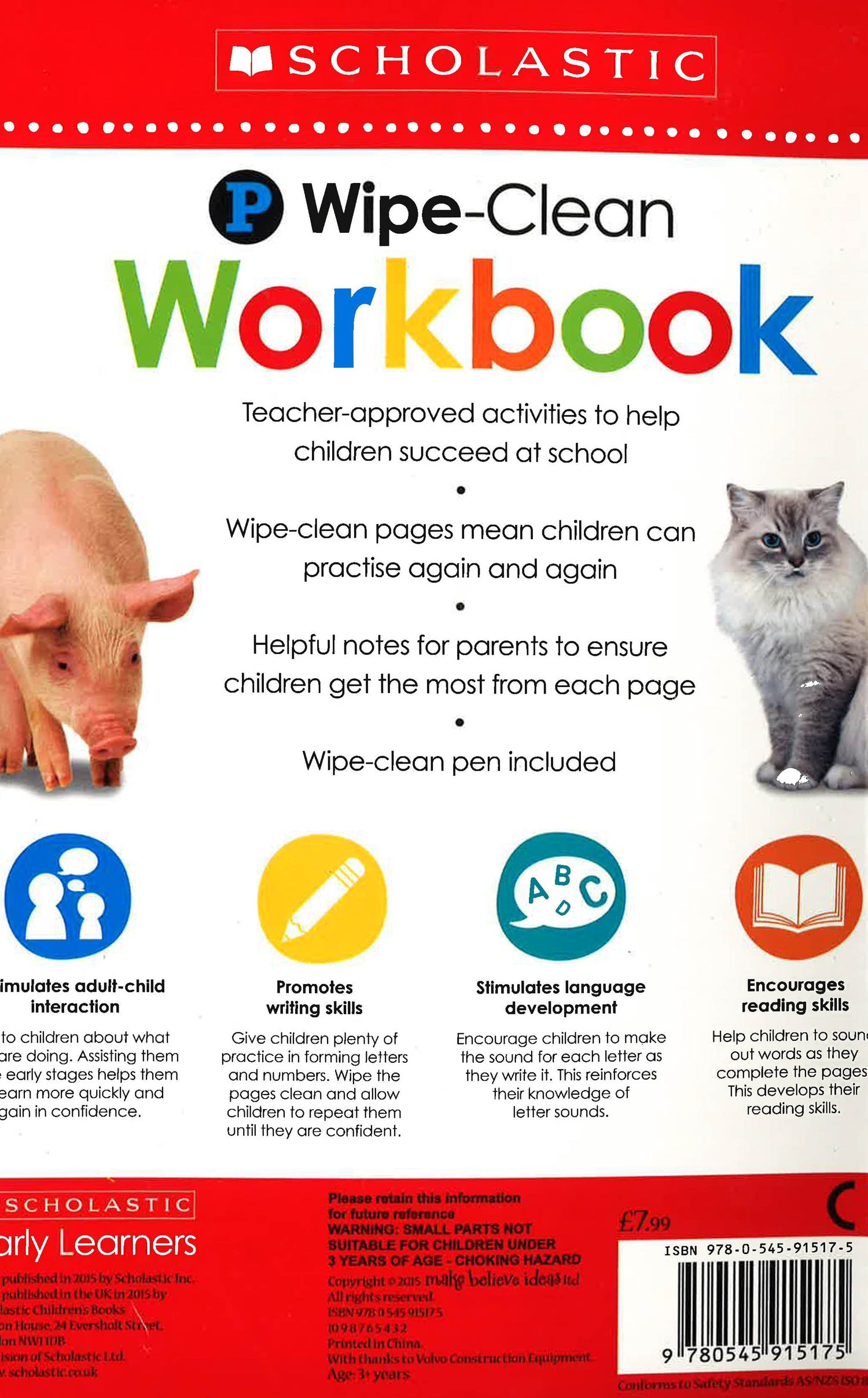 Scholastic Early Learners is an exciting new series of early learning novelty board books that combine Scholastic's strength in learning with beautiful photography and clear designs to stimulate early learning. Wipe Clean Workbooks - Pre-School is a colourful, wipe-clean workbook to support children in their early learning. Provides plenty of practice for children on a wide range of early learning topics. A wipe-clean pen is provided, the wirobound book lies flat, and the glossy card pages are easy to wipe clean so that children can practice until they have really mastered a topic. This Pre-School book focuses on writing letters and the sounds they make, writing numbers, sequencing, colours, shapes, and opposites.