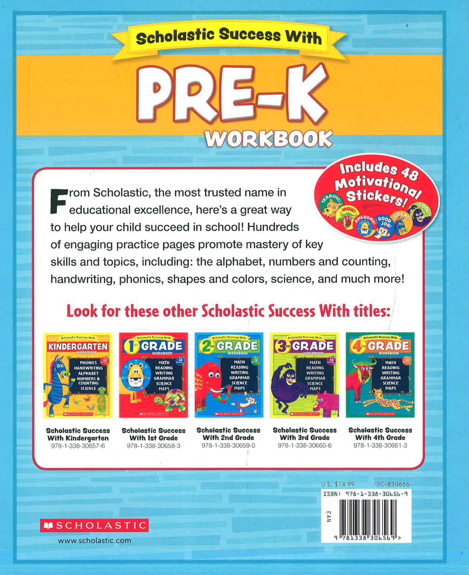 From Scholastic, the most trusted name in educational excellence, here's a great way to help your child succeed in school! Hundreds of engaging practice pages promote mastery of key skills and topics, including: the alphabet, numbers and counting, handwriting, phonics, shapes and colors, science, and much more!