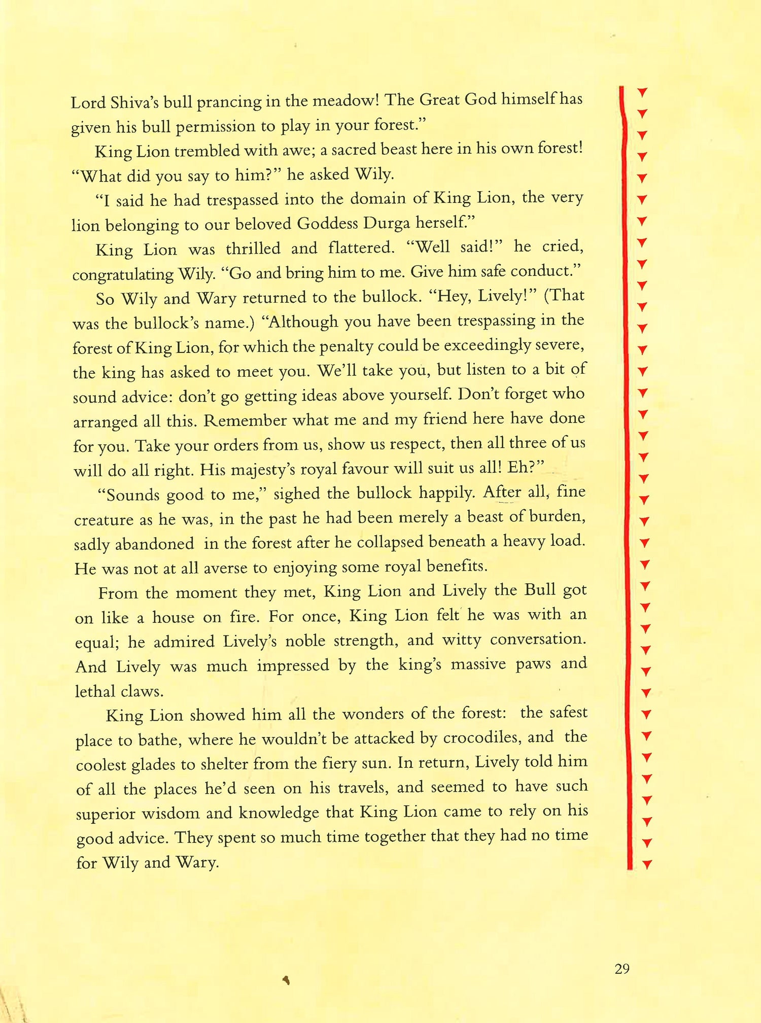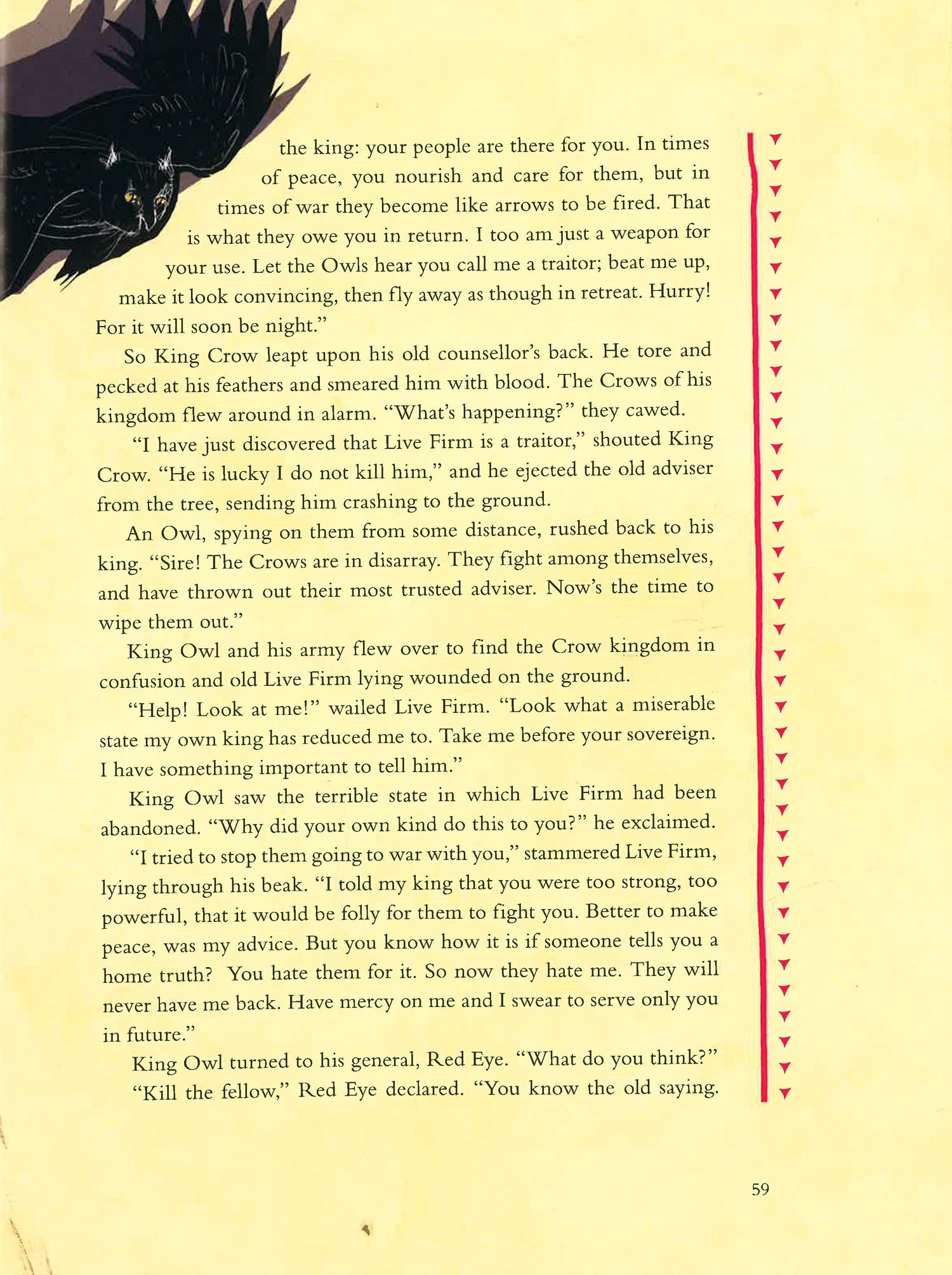 How can a king knock some sense into his silly sons so that they grow up sensible young men? A wise man tells the king that he can do the job in six weeks. Every time one of the boys says or does something rash, the sage will put him back on the straight and narrow by telling him a cautionary tale - the story of a proud hare, or perhaps an owl, or a crow... This collection of fables, known as the Panchatantra and familiar all over Asia, were first told, then written down in Sanskrit over 2,000 years ago. Jamila Gavin brings them alove for modern readers by telling the story of the wise man and the young princes as original stories framing the classic animal fables. The result is a powerful and unique vision of this classic Indian work.