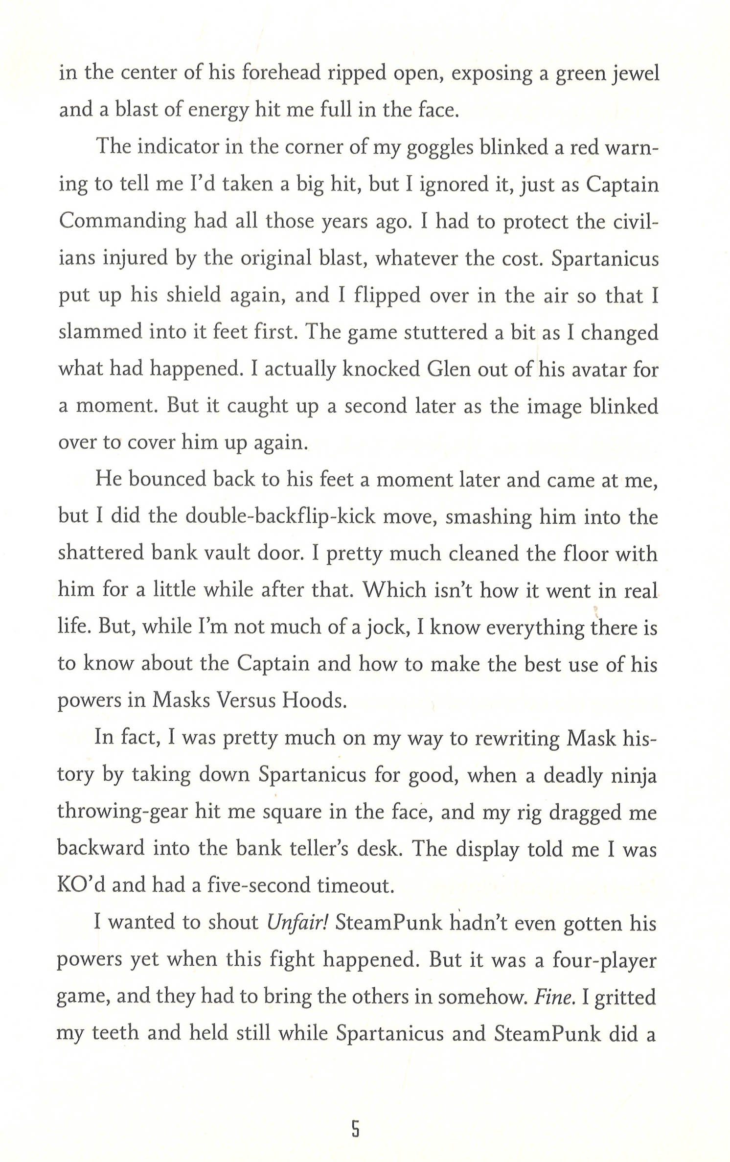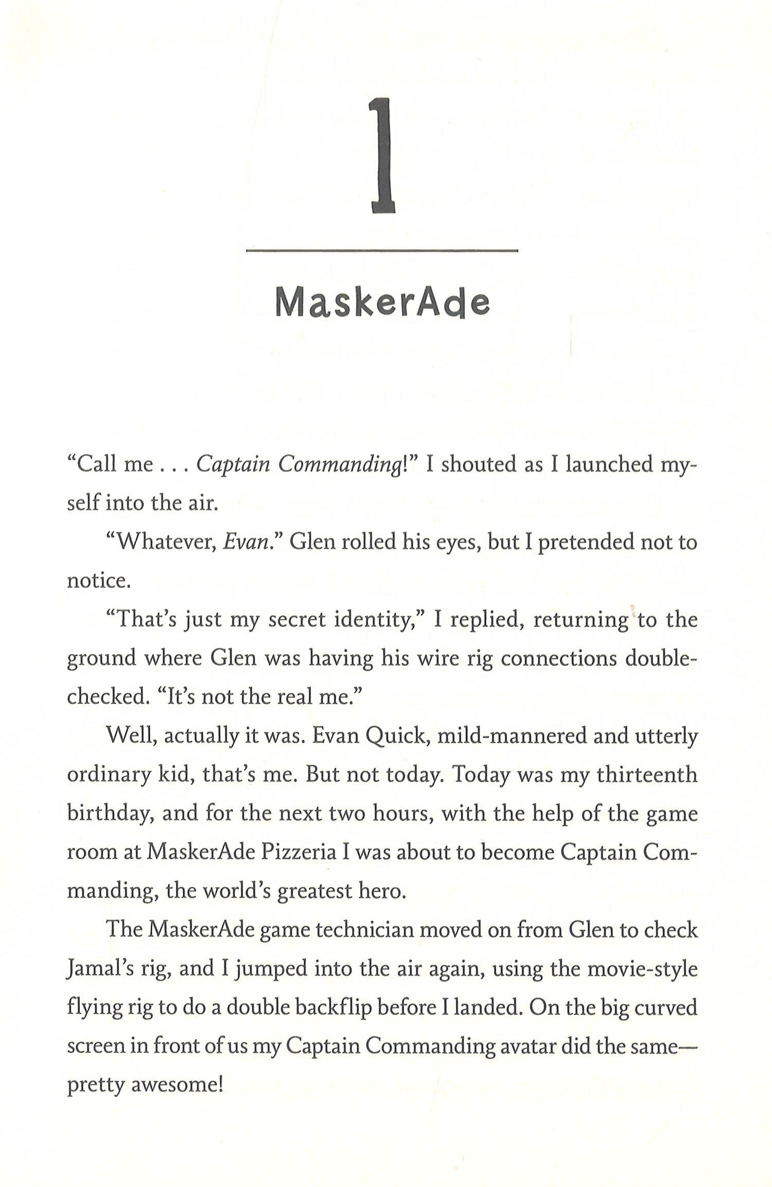 Evan Quick, Hero's Log, May the 25th... and darn it - I just can't do this. I'm never going to be a Mask. Get over it Evan. Evan Quick has spent his whole life dreaming of becoming a hero. Every morning he wakes up and runs through a checklist of test to see if he's developed powers over night, and every day it is the same thing - nothing. No flying, no super strength, no heat rays or cold beams. No invulnerability - that always hurt to check - no telepathy, no magic. Not even the ability to light a light bulb without flipping a switch. And now, he's finally ready to give up. But then, the class field trip to the Mask Museum is interrupted by a super villain attack, and Evan somehow manages to survive a death ray. Even better, Evan's favorite Mask, Captain Commanding, shows up to save them all -- and when things go very wrong, it's Evan who finds the strength to come to Captain Commanding's rescue. Yet the hero's reception Evan is expecting never happens. Before he even gets the chance to say hello, Evan is bundled away to The Academy, an institution derisively called The School for Sidekicks by its students. Forced to take classes like Banter Basics and Combat with Dinnerware, while being assigned as an 'apprentice' to Foxman - a Mask widely considered a has-been -- Evan starts to worry that he'll never be able to save the day...