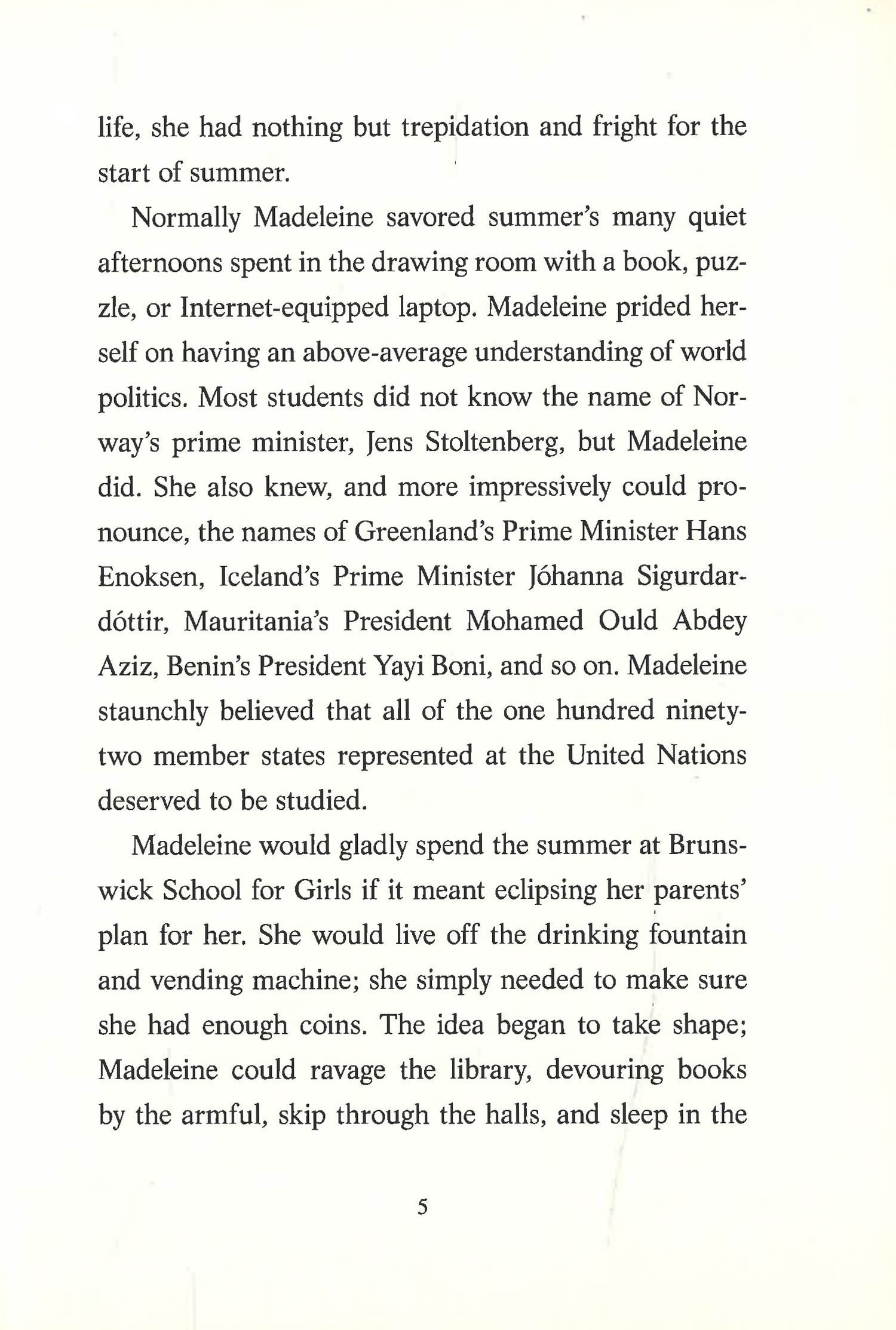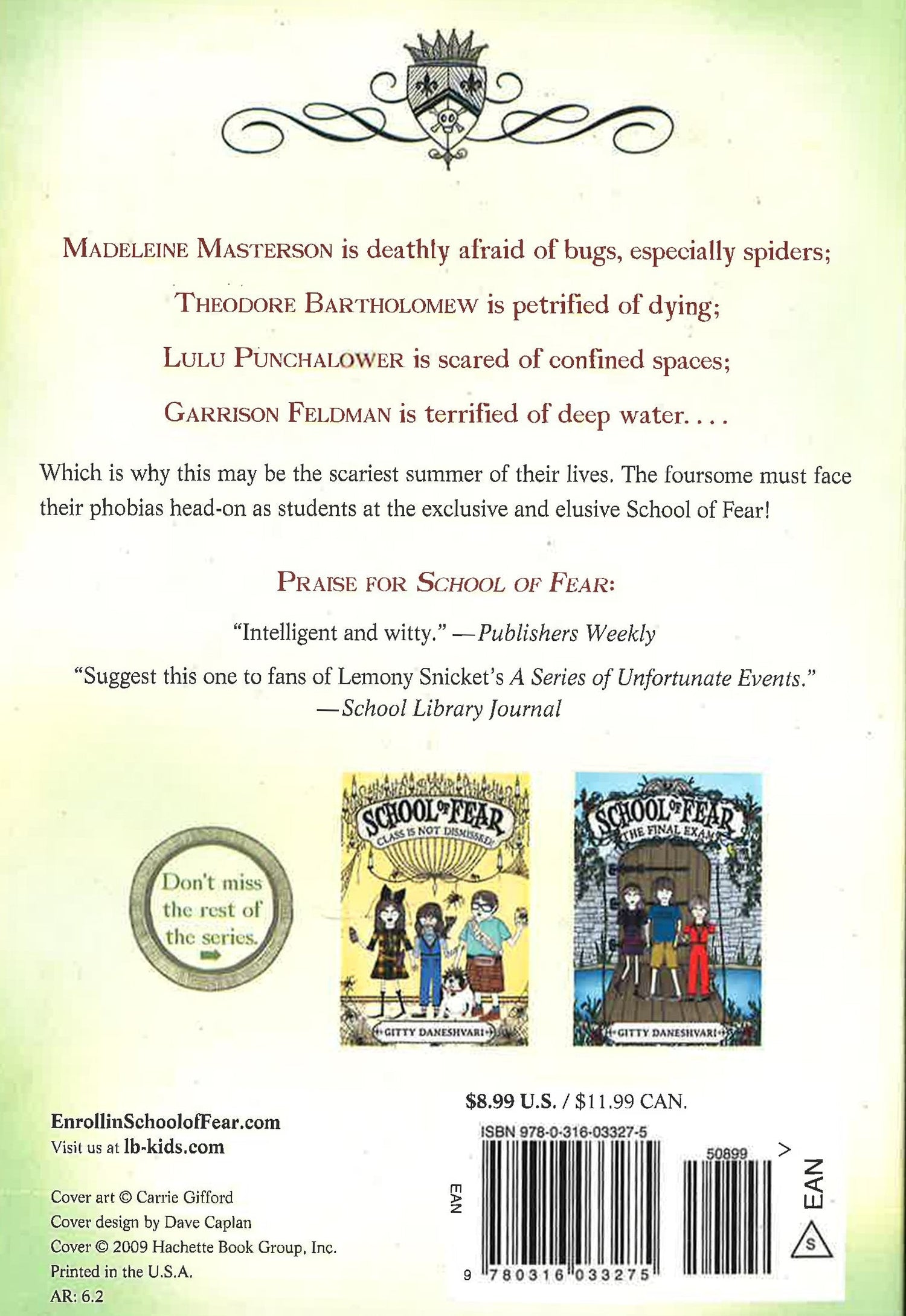 For the first time--maybe ever--Madeleine, Theo, Lulu, and Garrison are not looking forward to the start of summer, and three little words are to blame: School of Fear. In what they're sure will be the longest and most terrifying six weeks of their lives, the foursome must face their phobias head-on as students of the exclusive and elusive school. There's no homework or exams. But if they don't conquer their fears by the end of the summer, they'll find out just how frightening failing can be.