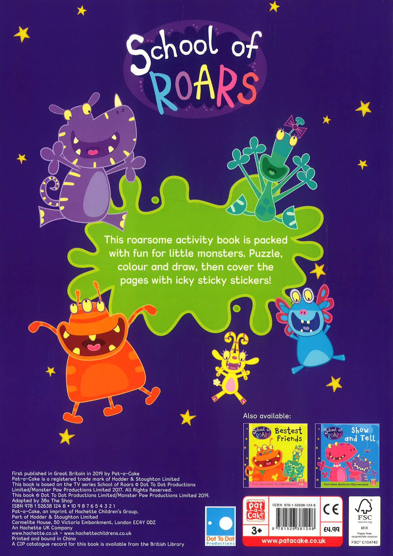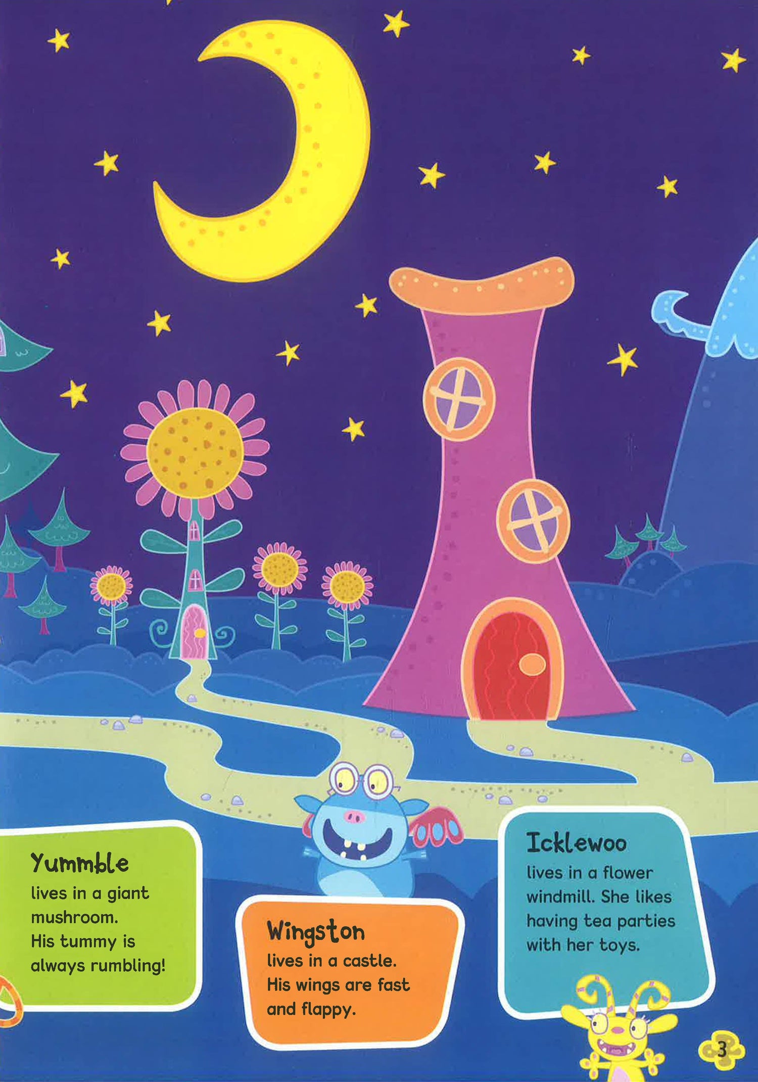 Stick, puzzle and play with these icky sticky stickers, just like Icklewoo's. Meet the monsters and their families and learn all about the roarsome School of Roars.