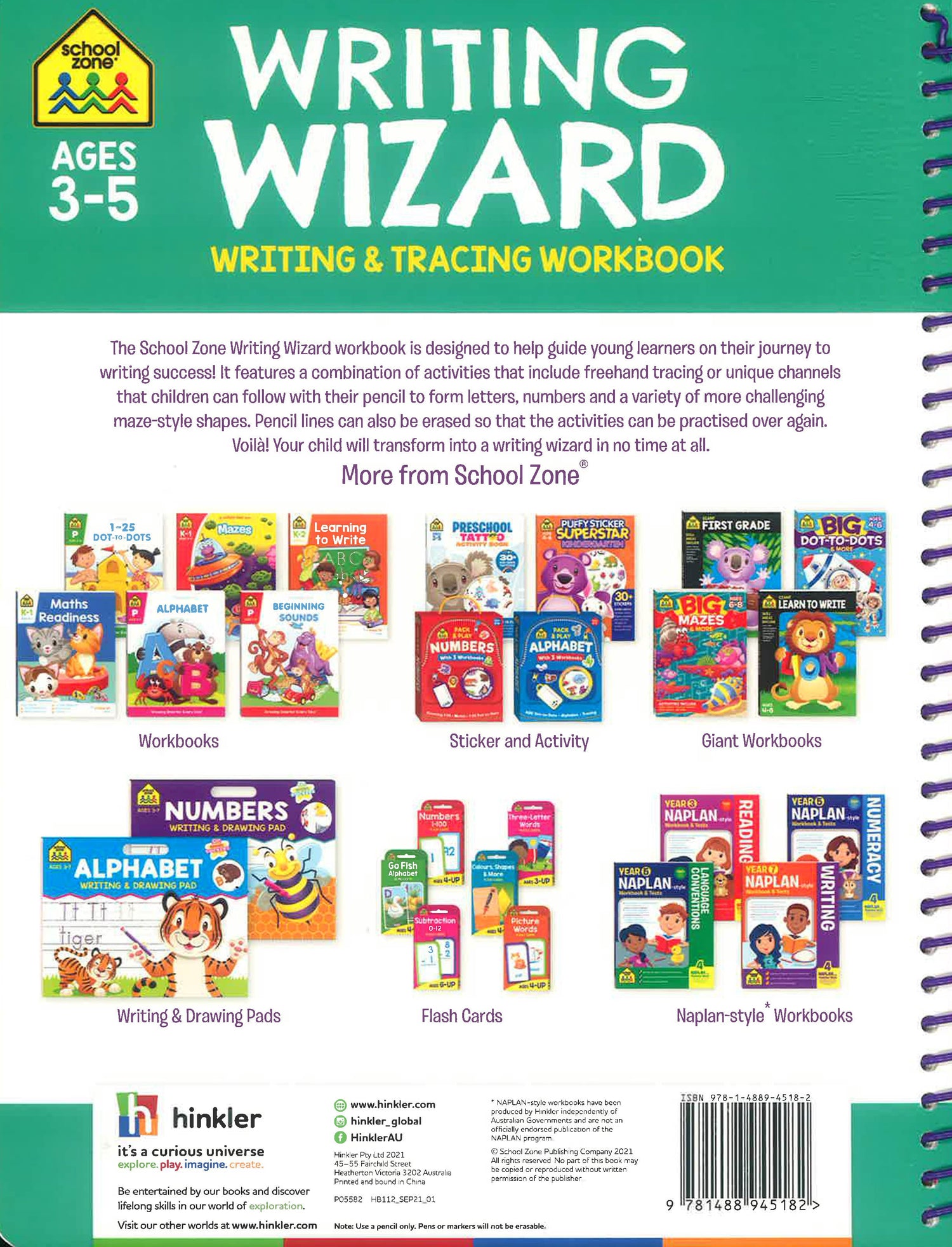 4x School Zone Writing Wizard Tracing and Writing Book 3y+
