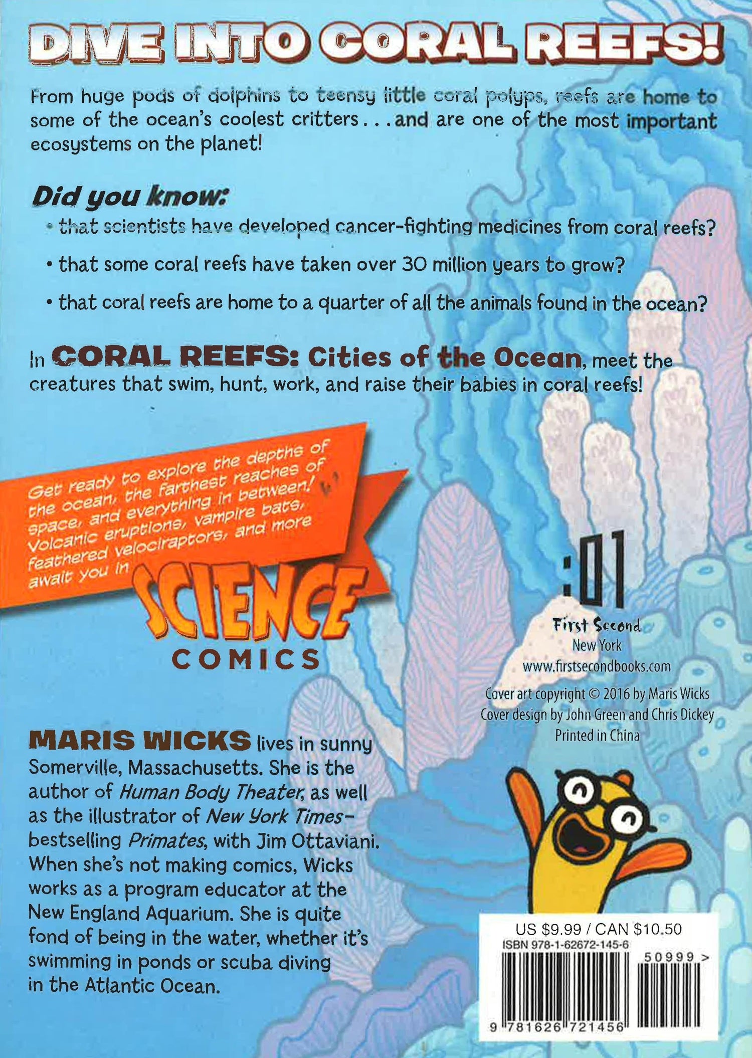 Every volume of Science Comics offers a complete introduction to a particular topic: dinosaurs, coral reefs, the solar system, volcanoes, bats, flying machines, and more. These gorgeously illustrated graphic novels offer wildly entertaining views of their subjects. Whether you're doing a natural science unit at school or a thirty year old with a secret passion for planes, these books are for you! In Coral Reefs, we learn all about these tiny, adorable sea animals! This absorbing look at ocean science covers the biology of coral reefs as well as their ecological importance. Nonfiction comics genius Maris Wicks brings to bear her signature combination of hard-core cuteness and in-depth science.