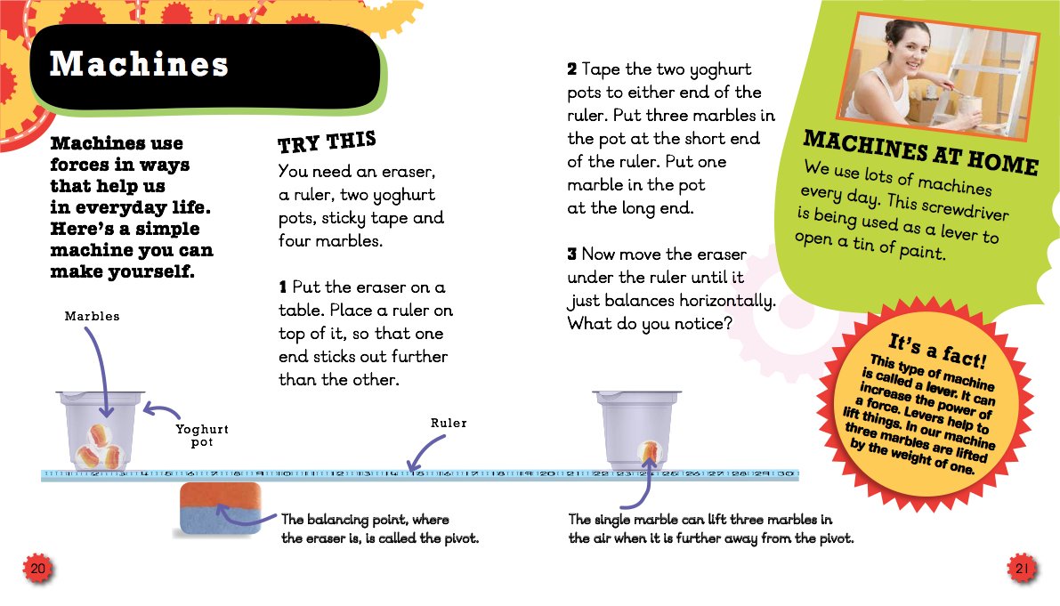 Find out what stops us floating away and how friction slows us down, plus much, much more in this fascinating first introduction to the basics of physics. Packed with fun activities that will get children thinking about forces and motion in the world around them, this guide uses scientific experiments to show how the different forces work. An ideal first introduction to core Key Stage 1 science topics, combining clear and simple explanations with hand-on activities to encourage children to think about how the things around them work. Also includes a glossary to explain tricky terms plus parents and teachers' notes to help take the learning further.