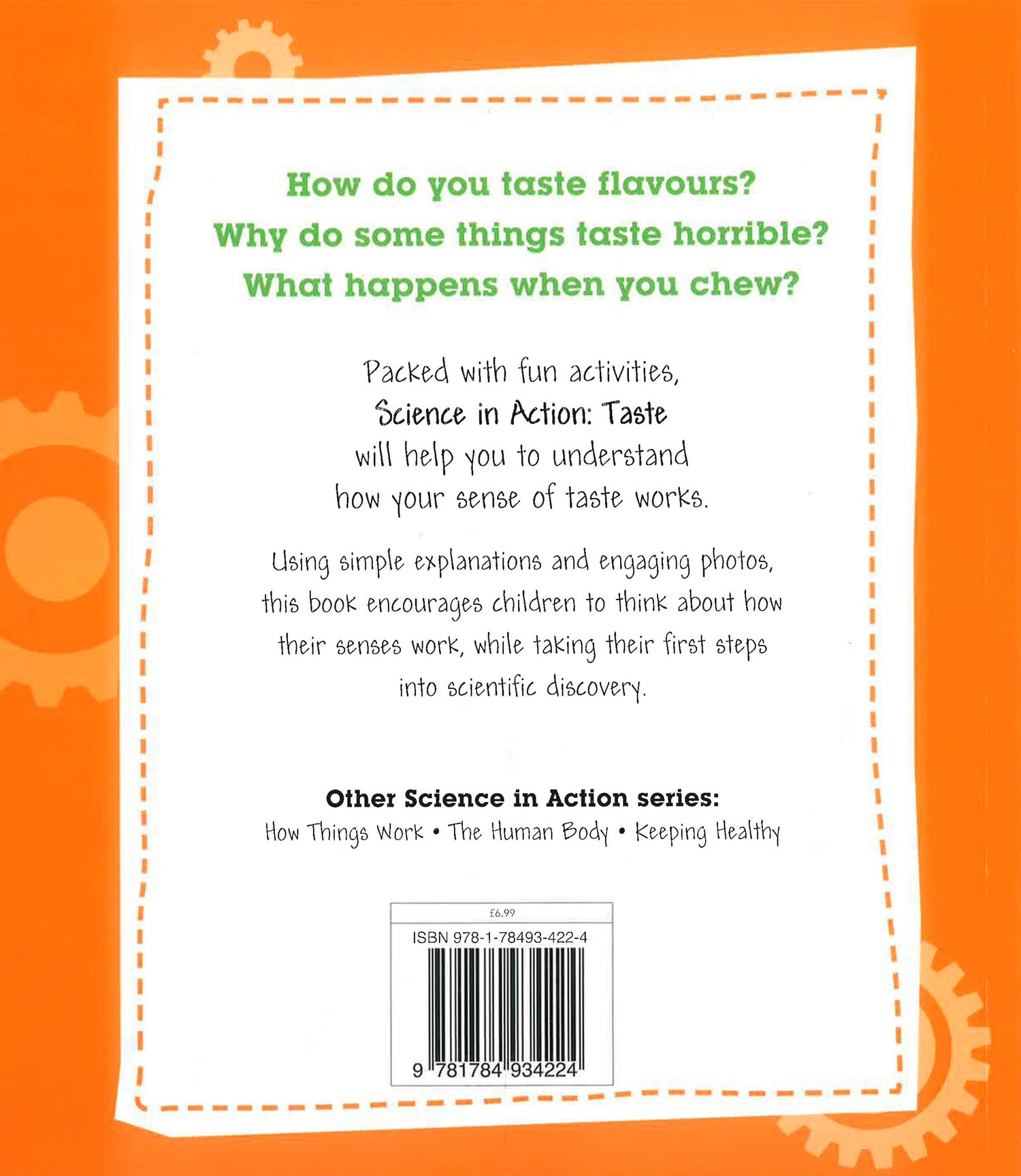 How can you taste? How does your mouth works? What are the parts allowing you to taste your food? How do our tongues taste different flavours? The ideal introduction to the sense of taste, this fascinating book is full of fun activities, accompanied by simple scientific explanations, that encourage young readers to understand how their body works.