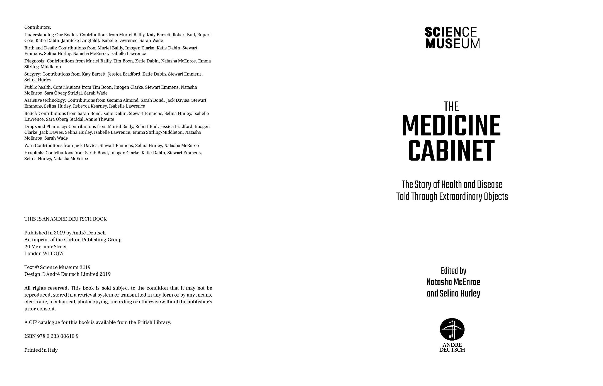The Medicine Cabinet is a beautifully curated and expertly written compendium of over 100 astonishing objects related to the story of medicine. Each object is cared for by London's Science Museum, which houses one of the largest and most significant collections of medical artefacts in the world – including a Bronze Age trepanned skull, healing water from an Ancient Greek well, a seventeenth-century barber's pole, a pharmacist's ceramic leech jar, a gold memento mori ring, First World War blood transfusion apparatus and a prototype MRI scanner.