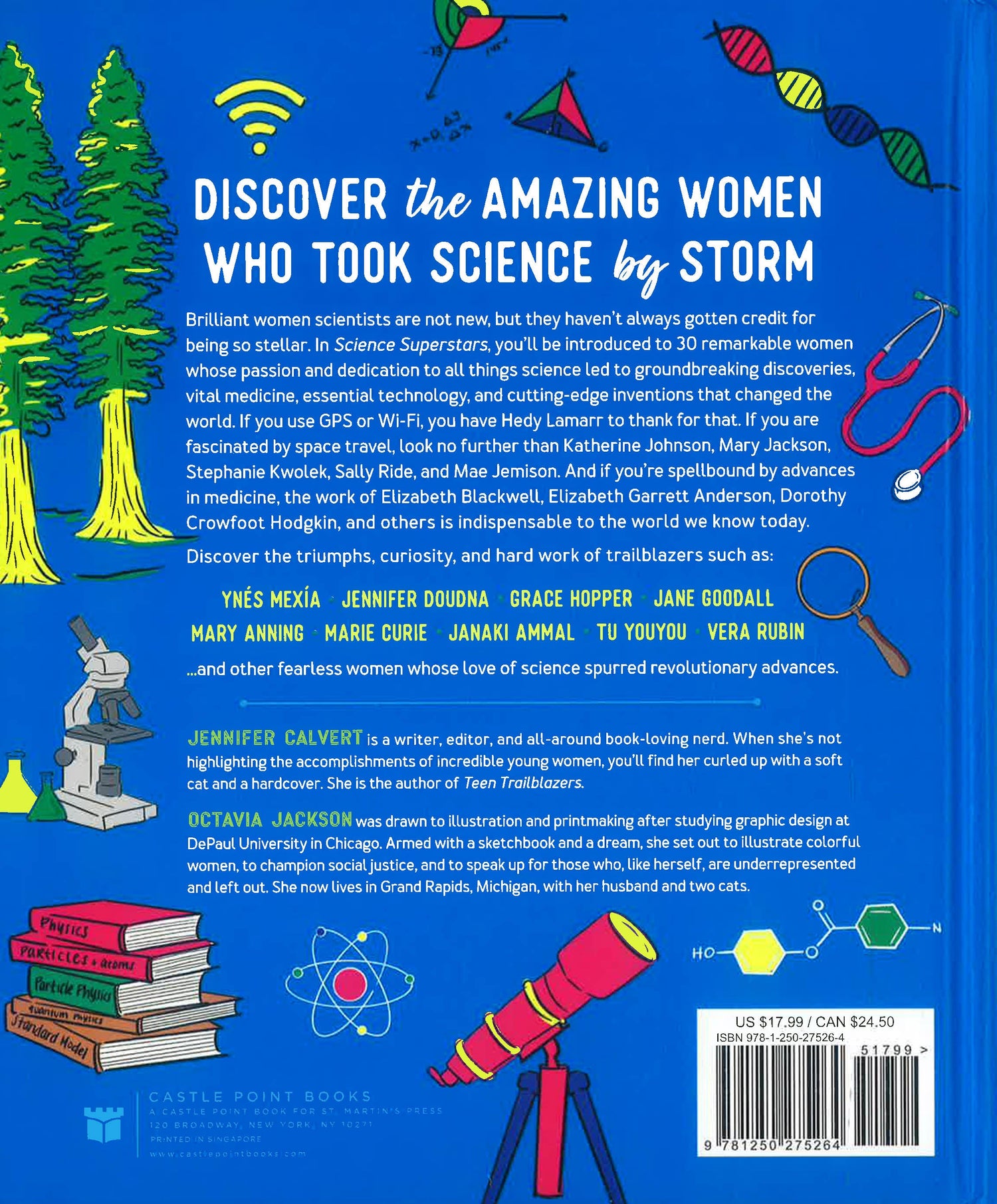 Women scientists are not new, but they haven’t always gotten credit for being so stellar. In Jennifer Calvert and Octavia Jackson's Science Superstars, you’ll be introduced to 30 remarkable women whose passion and dedication to all things science led to groundbreaking discoveries, vital medicine, essential technology, and cutting-edge inventions that changed the world. If you use GPS or Wi-Fi, you have Hedy Lamarr to thank for that. If you are fascinated by space travel, look no further than Katherine Johnson, Mary Jackson, Stephanie Kwolek, Sally Ride, and Mae Jemison. And if you’re spellbound by advances in medicine, the work of Elizabeth Blackwell, Elizabeth Garrett Anderson, Dorothy Crowfoot Hodgkin, and others is indispensable to the world we know today.