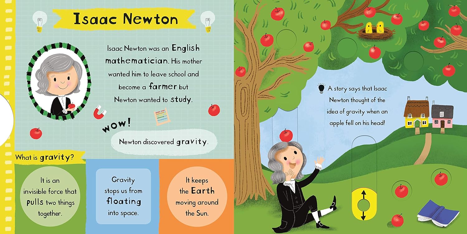 Discover the scientists who changed our world in My First Heroes: Scientists! Push, pull and slide the scenes to find out about Zhang Heng, Isaac Newton, Marie Curie and Rosalind Franklin, and be inspired by their incredible work.