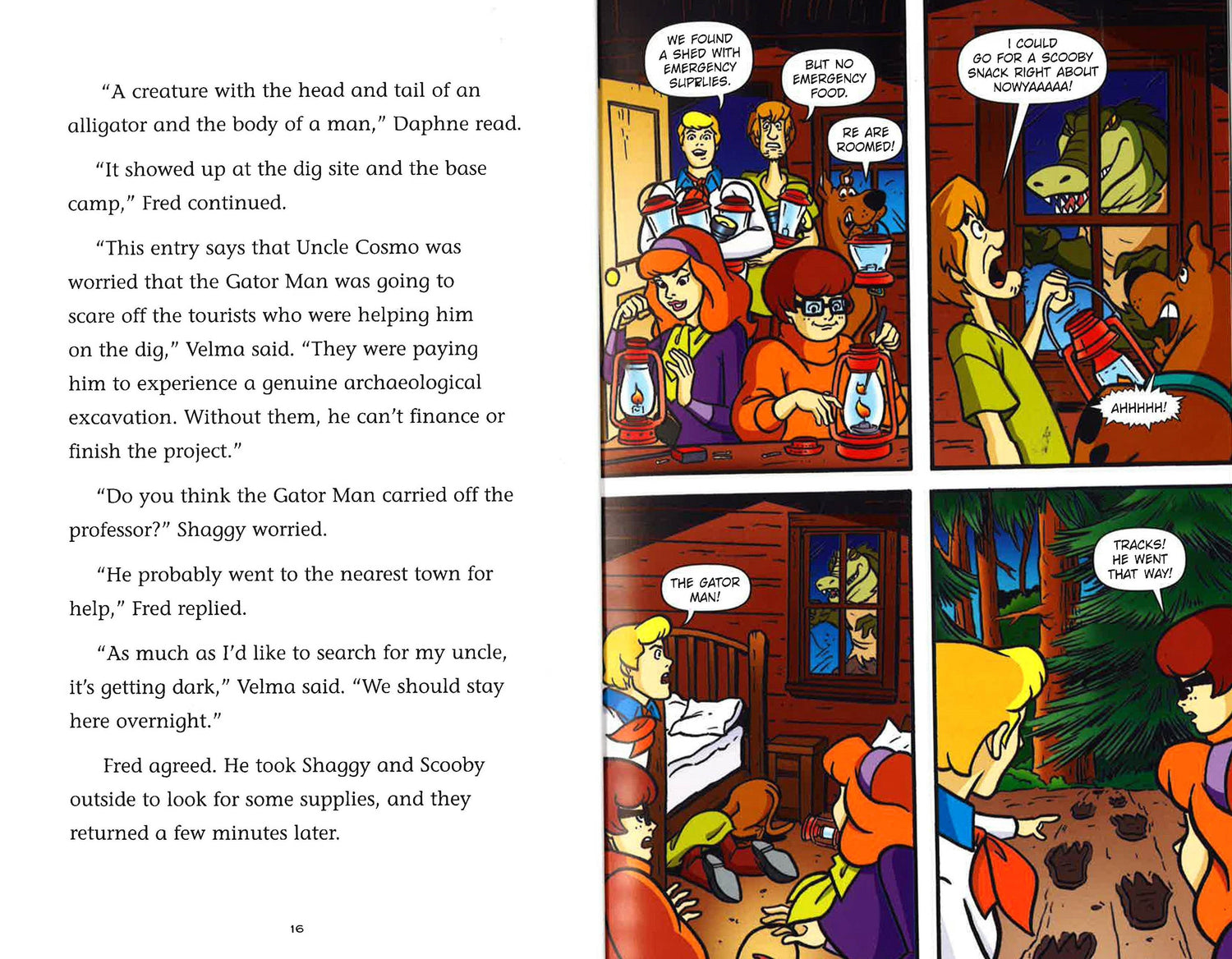Scooby-Doo and Mystery Inc. gang visit an archeological dig, but the camp is deserted, including Professor Cosmo Dinkley. The professor's journal reports a series of frightening encounters with something called the Gator Man, and the gang is convinced that the creature has kidnapped the crew. Has the legend of the Gator Man come true, or is it all a big crock? Action-packed text and comics-style art combine in this Scooby-Doo mystery!