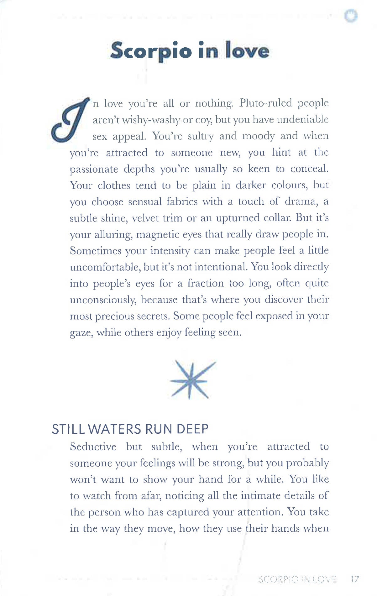 Presented in a beautiful gift edition with silver-embossing and gilded page-edges, this guide will reveal what you should be doing to live at your highest potential. With insight into what your day of birth means for your personality as well as ideas to meditate on to bring further spiritual development, this is your one-stop guide to all things Scorpio.