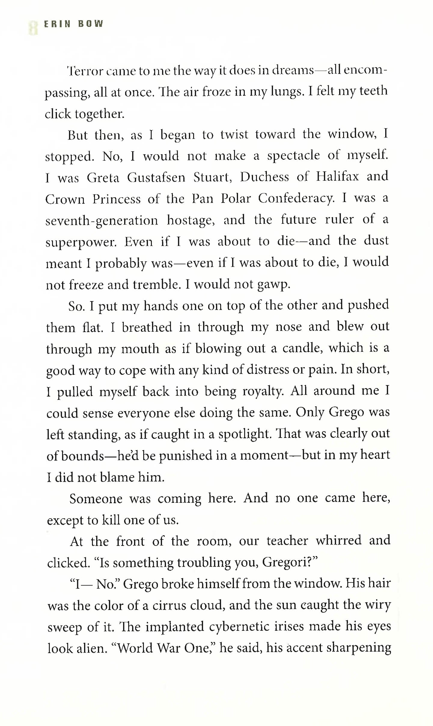 Greta will be free if she can survive until her eighteenth birthday. Until then she lives in the Precepture school with the daughters and sons of the world’s leaders. Like them, she is taught to obey the machines that control their lives. Like them, she is prepared to die with dignity, if she must. But everything changes when a new hostage arrives. Elián is a boy who refuses to play by the rules, a boy who defies everything Greta has ever been taught. And he opens Greta’s eyes to the brutality of the system they live under—and to her own power.