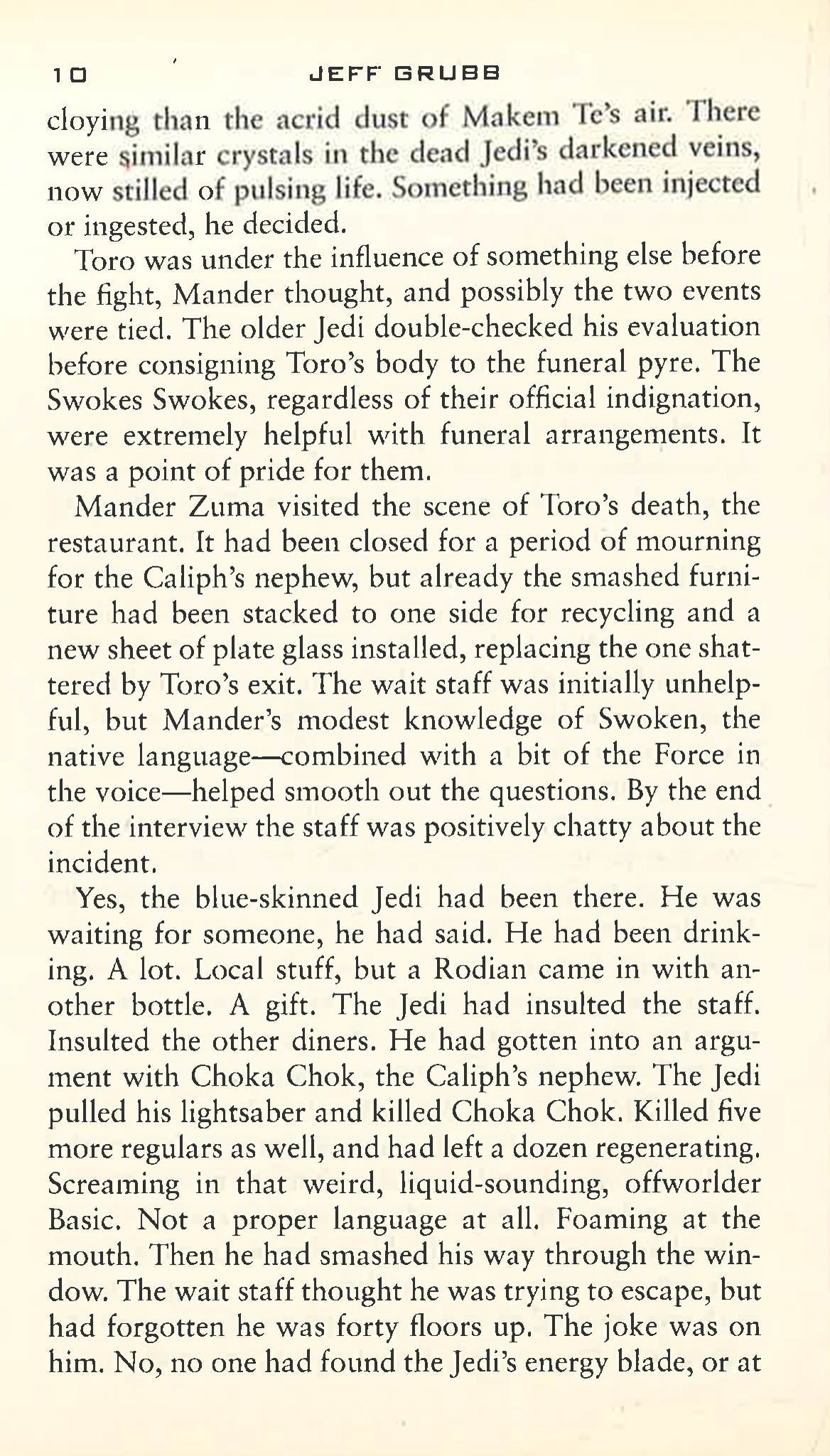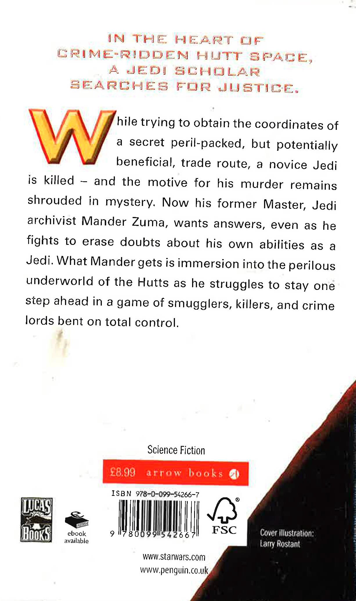 When news of the death of his former apprentice reaches Jedi Master Mander Zuma, he is immediately suspicious. Toro Irana was on the trail of something big when he died--something involving a mysterious new drug. As the Jedi Master investigates further, he finds himself deeply involved in the political machinations of the Hutts, dealing with the sister of the deceased's desire for revenge, and the growing realization that there's more to being a Jedi than training and studying. A fun and exciting paperback original by Jeff Grubb.