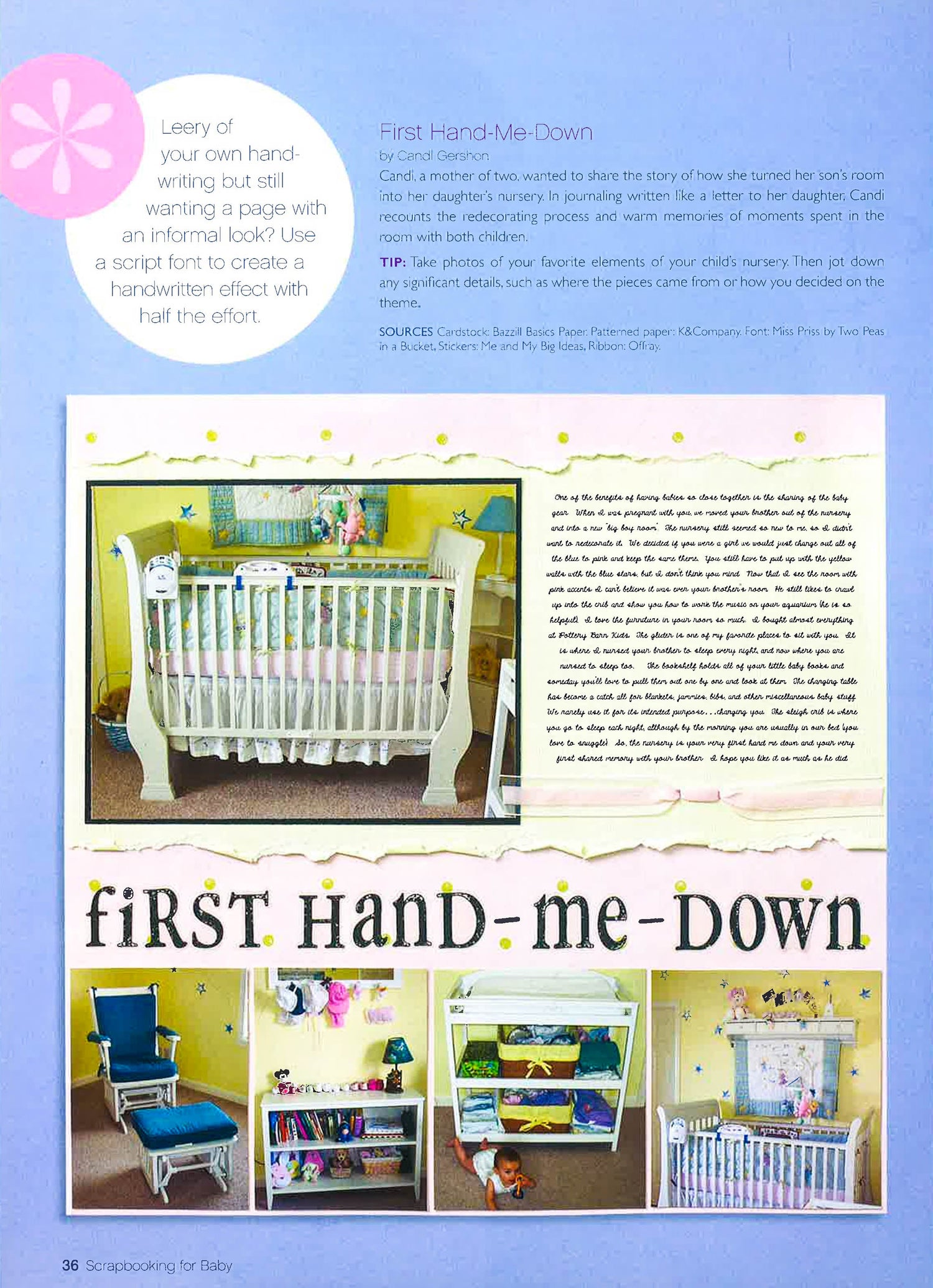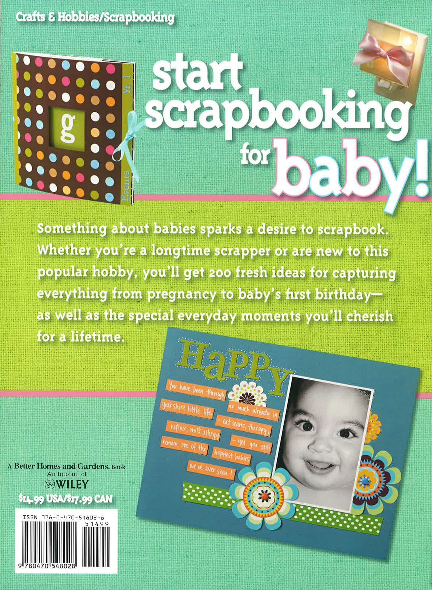 Everything you need to make the ultimate scrapbooking keepsake for baby The arrival of a new baby is the perfect time to start scrapbooking. Better Homes and Gardens Let's Start Scrapbooking for Baby gives you tons of ideas, advice, and inspiration on how to capture precious moments of your baby's first year and turn them into timeless scrapbook layouts that you (and your baby) will cherish for a lifetime. Better Homes and Gardens Let's Start Scrapbooking for Baby takes the guesswork out of scrapping and gives you expert guidance on everything you need to make the ultimate scrapbook for baby, from the supplies you need now and what you can add later to tips of preserving baby memorabilia to the best ways to apply fun and functional paper crafting applications and embellishments. More than 200 fresh scrapbooking ideas for the first year of baby's life Includes "Let's Get Started Scrapbooking Step-by-Step Guide" Bonus ideas and advice on how to photograph newborns Whether you're a seasoned scrapper or are just venturing into paper crafting, Better Homes and Gardens Let's Start Scrapbooking for Baby shows you how to create a priceless and irreplaceable family keepsake you'll turn to again and again. Now get scrapping!