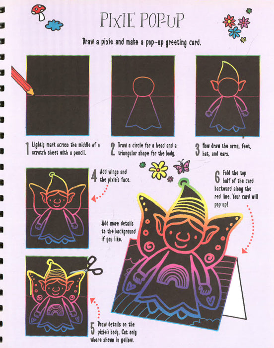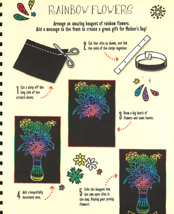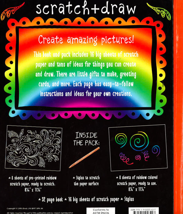 * 8 sheets of pre-printed rainbow scratch paper, ready to scratch. 8¼" x 11½"
