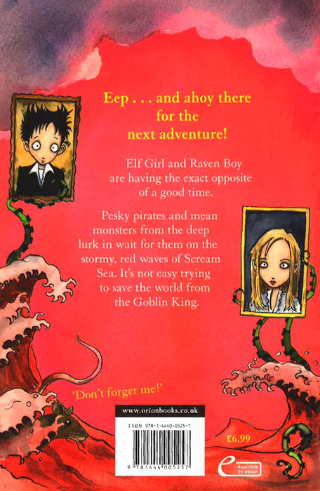 Elf Girl and Raven Boy have survived Monster Mountains and arrived on the shores of Scream Sea. Kidnapped by Scrim, pirate captain of the Naughty Porpoise, they're held prisoner below decks as the ship sets sail. But Captain Scrim and his crew are even more interested in mermaids than in bird boys and pointy-eared girls, and when they capture one they throw the pirate party of a lifetime. Our daring duo, plus Rat and mermaid Molo, escape and go their separate ways, but not before Molo has given Raven Boy a tiny shell on a silver chain and told him to call on her for help. They continue their search for the Goblin King with adventures on a desert island, an 'invisible' spell, encounters with an even worse pirate called Blackblood on the stormy high seas, and then below the waves with the many scary beasts and monsters that roam the deep. No one said saving the world was easy!