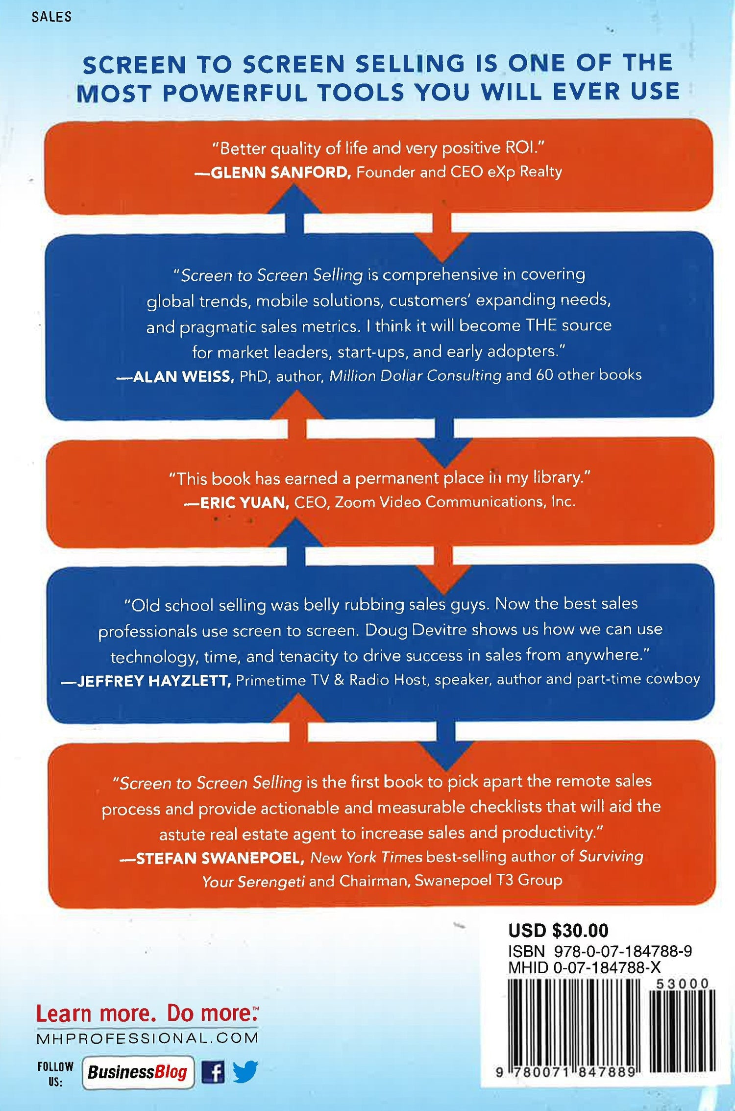 Filled with money-saving tips, time-saving strategies, and practical tech-smart solutions to all your business needs, screen to screen selling is the perfect go-to guide for making person-to-person connections that really count-and really pay off.