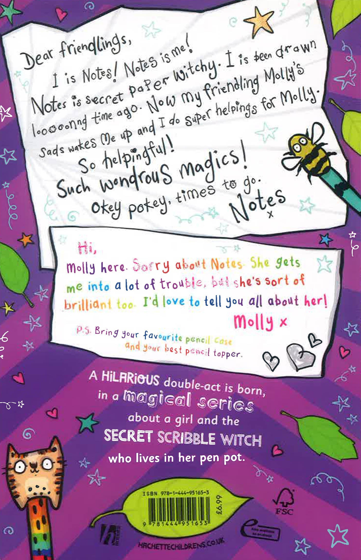 That is until some unexpected magic brightens up Molly's day. Notes, a tiny paper witch who has been lurking in a pen pot, springs to life - and into action! Some of the things Notes does are absolutely NOT helpful and get Molly into trouble with her grouchbag teacher. But it's surprising what one tiny witch, armed with nothing more than a pencil, can achieve before the bell for home time rings...