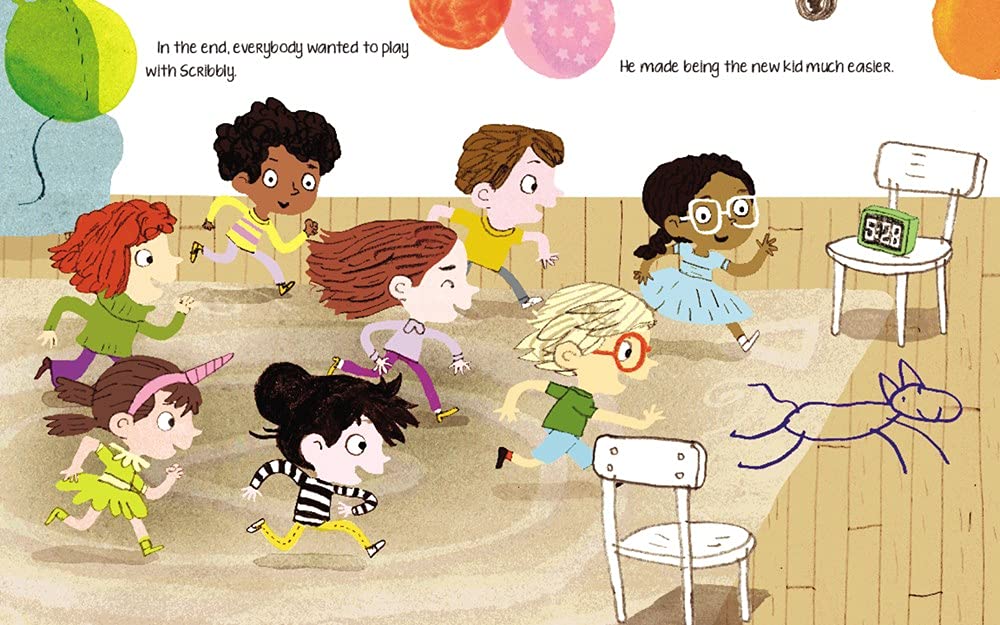 He plays catch, takes naps, but most importantly, Scribbly teaches Maude the importance of staying true to herself and gives her the courage to meet new friends—both human and four-legged.