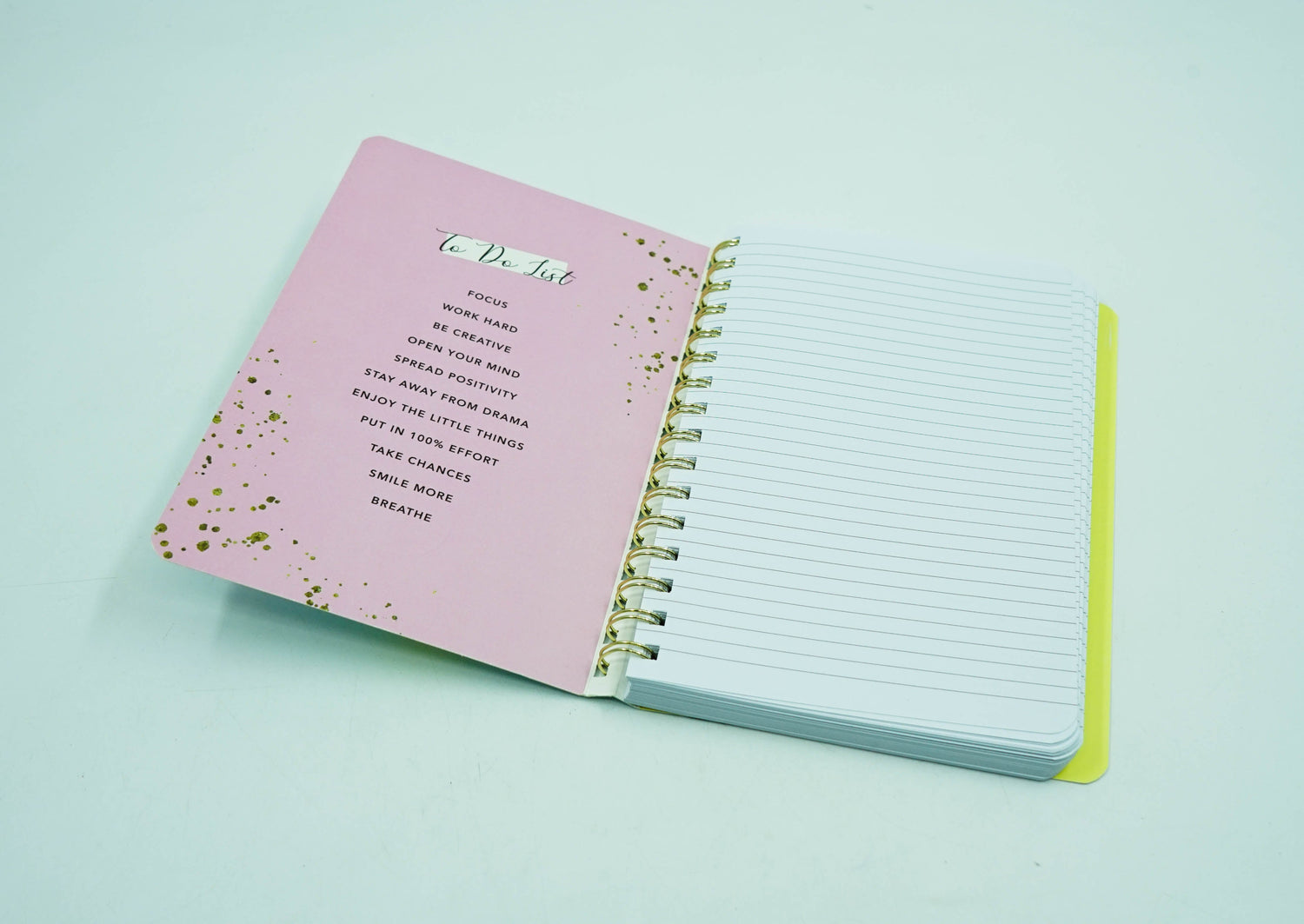 This gorgeous inspiring Journal features an enclosed spiral design, making it so easy to take notes on the go. Take it to meetings or keep on your desk for everyday notes and ideas. Jot down your important notes, dreams, ideas and thoughts anywhere you need with this journal. - Measures 210mm H X 143mm L - 100 ruled pages and 100 blank pages in 80gsm simile paper - Featuring spot UV lettering on cover