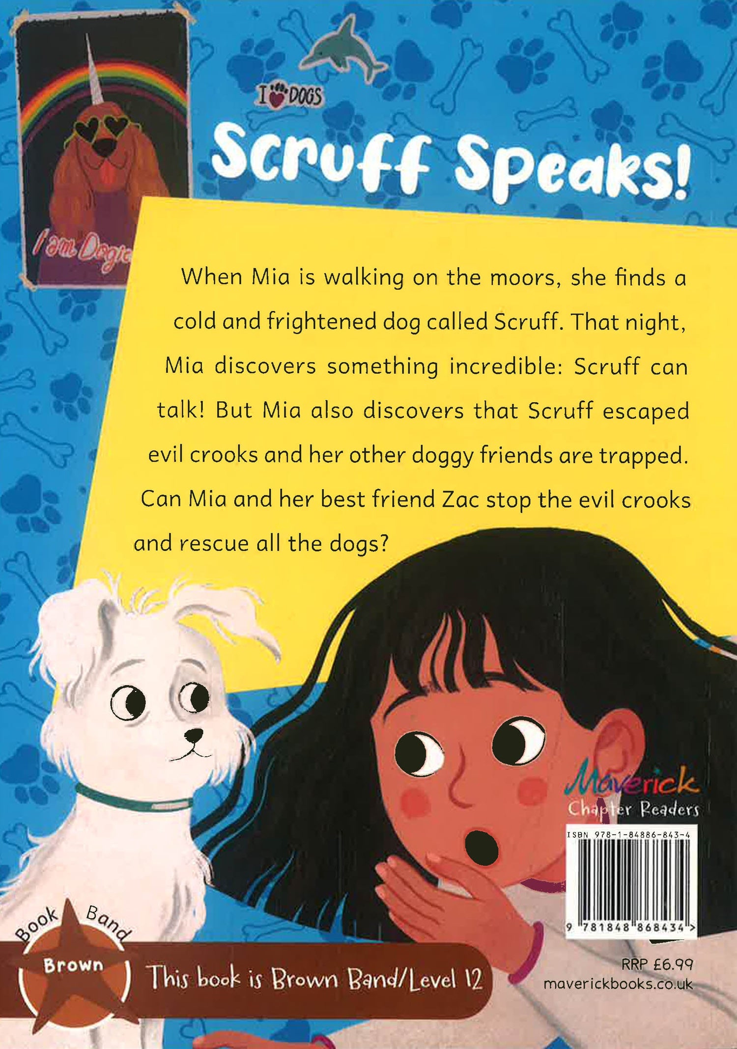 When Mia is out walking on the moors, she finds a cold and frightened dog called Scruff. That night, Mia discovers something amazing: Scruff can talk! Only she finds out that Scruff actually escaped a secret lab, and that there are still dogs there that need rescuing. Can Mia and her friend Zak break out the rest of the dogs and stop the evil crooks?