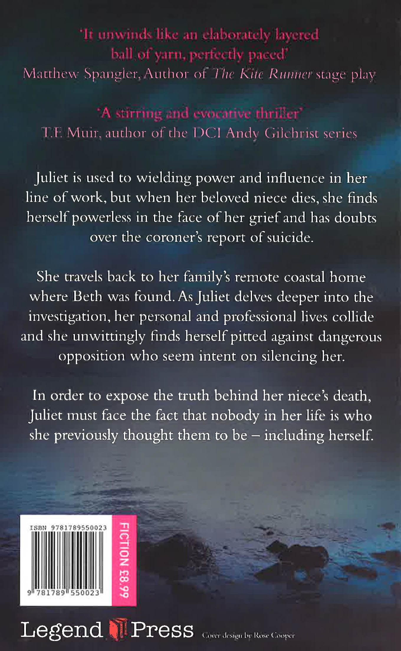 Juliet is used to wielding power and influence in her line of work, but when her beloved niece dies, she finds herself powerless in the face of her grief and has doubts over the coroner's report of suicide. She travels back to her family's remote coastal home where Beth was found. As Juliet delves deeper into the investigation, her personal and professional lives collide and she unwittingly finds herself pitted against dangerous opposition who seem intent on silencing her. In order to expose the truth behind her niece's death, Juliet must face the fact that nobody in her life is who she previously thought them to be - including herself.