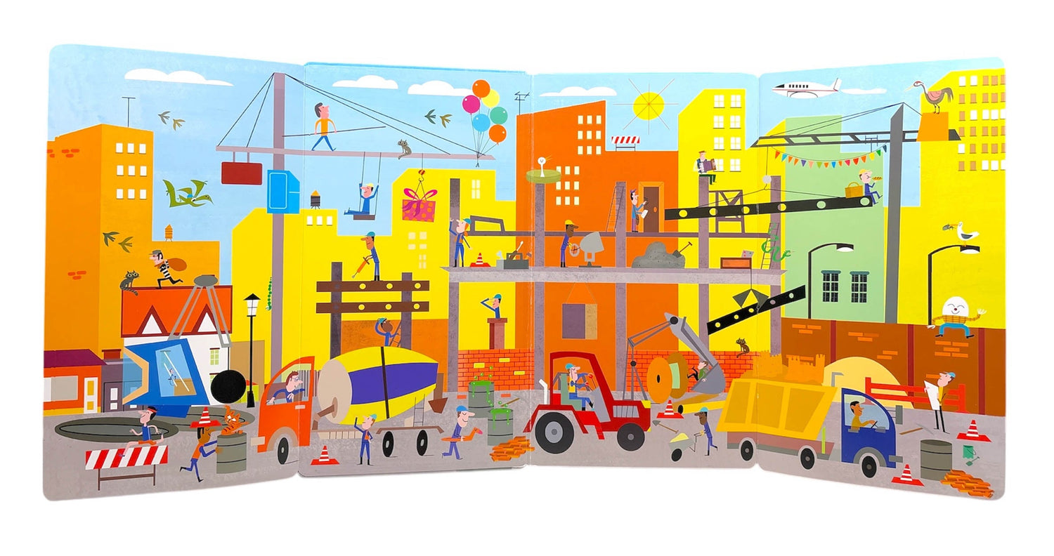 Can you find the singing builder, the koala hanging from a crane, or the wheelbarrow full of yellow bricks? With giant foldout pages, there's lots to spot at the construction site, on the road, and on bridges in this quirky search and find book.
