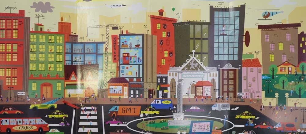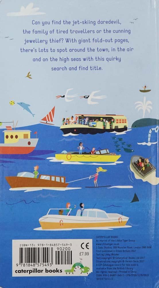 Can you find the jet-skiing daredevil, the tired family of travellers or the cunning jewellery thief? With giant fold-out pages, there is lots to spot around the town, at the airport and on the high seas with this quirky search and find title from Fermin Solis.