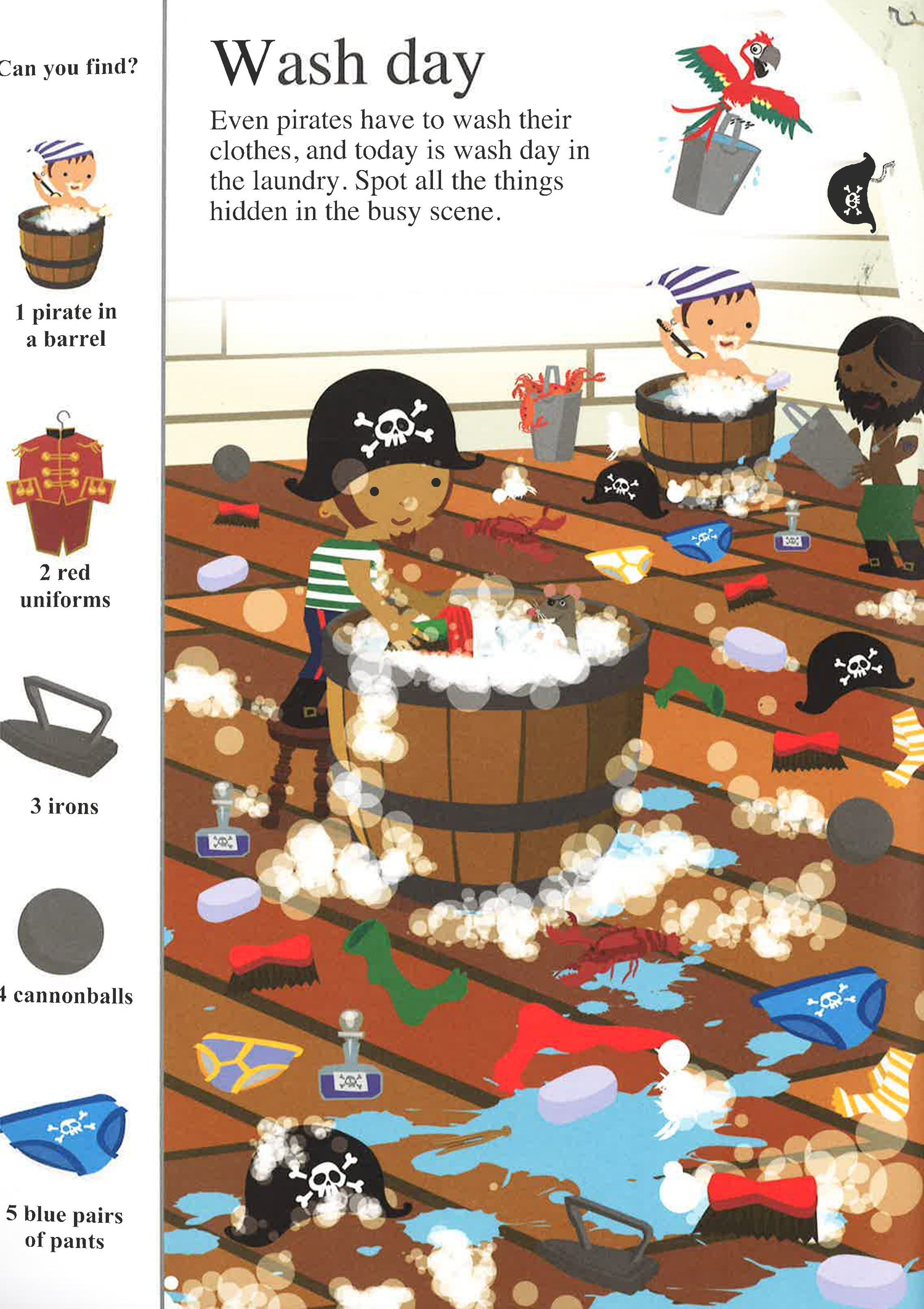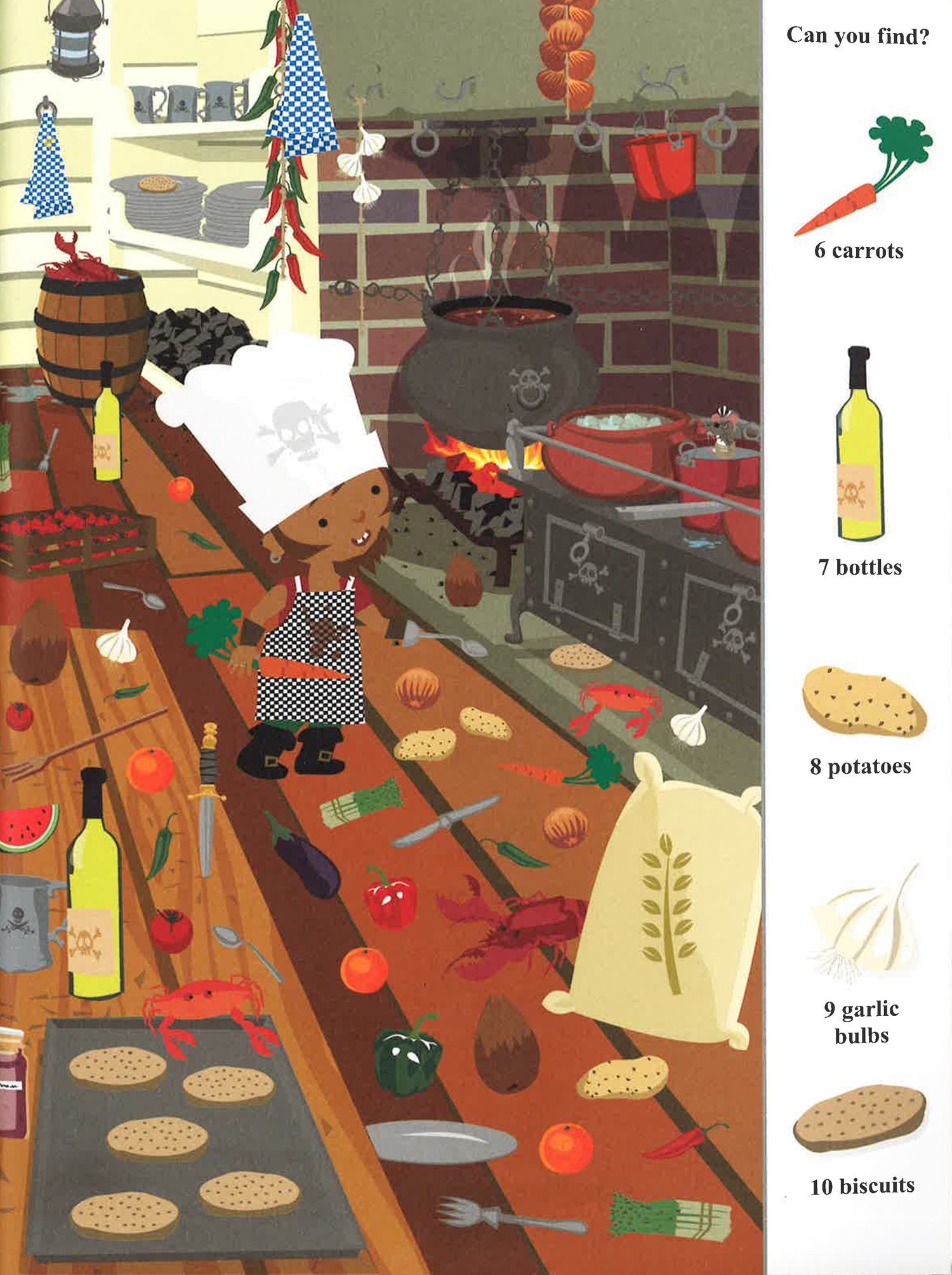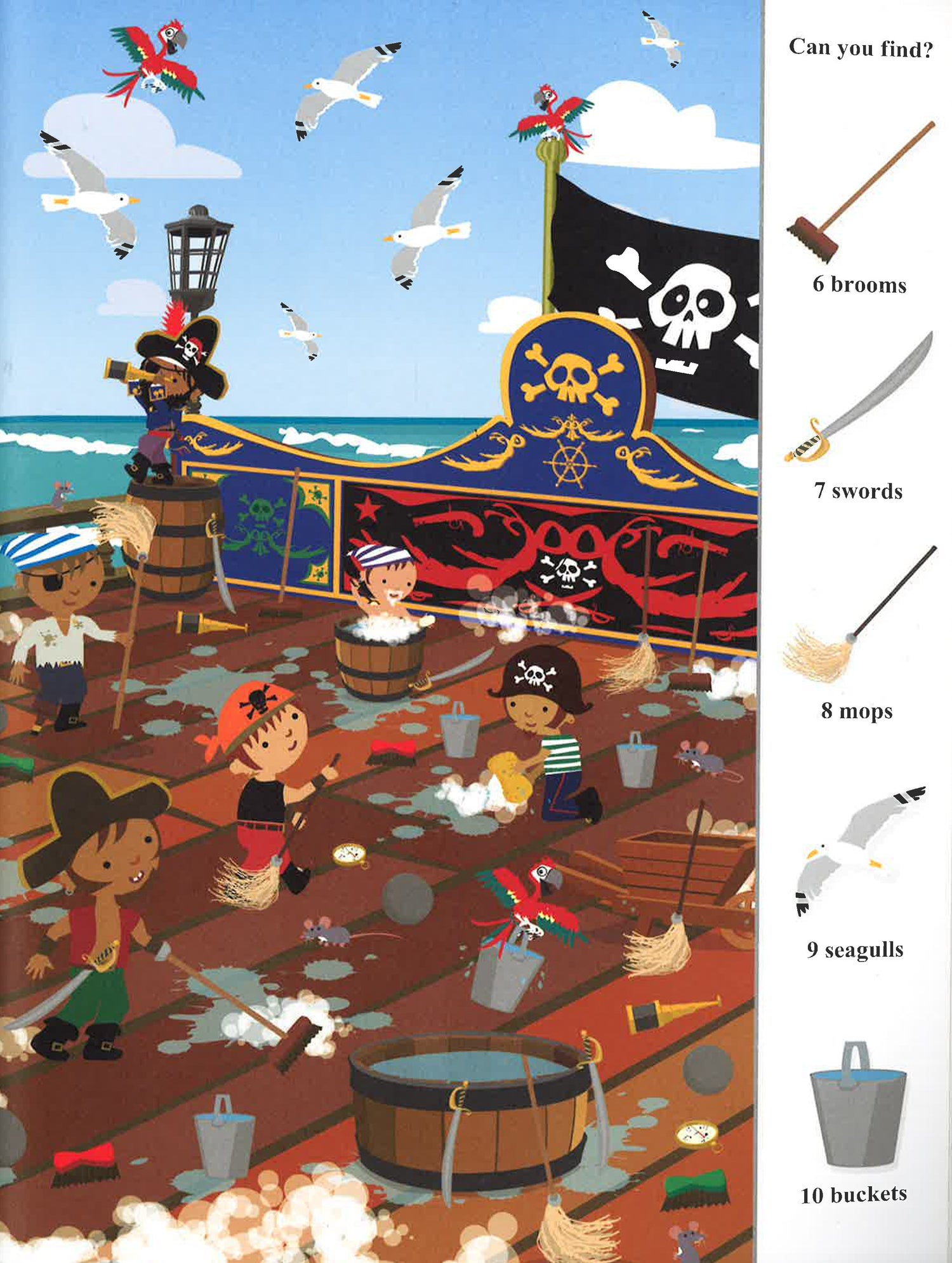 Discover swashbuckling pirate scenes packed with over 1000 things to find. From dingy cabins and the cook's galley to the tresure vault and the secretive map room, get lost in a world of pirate seach-and-find fun!