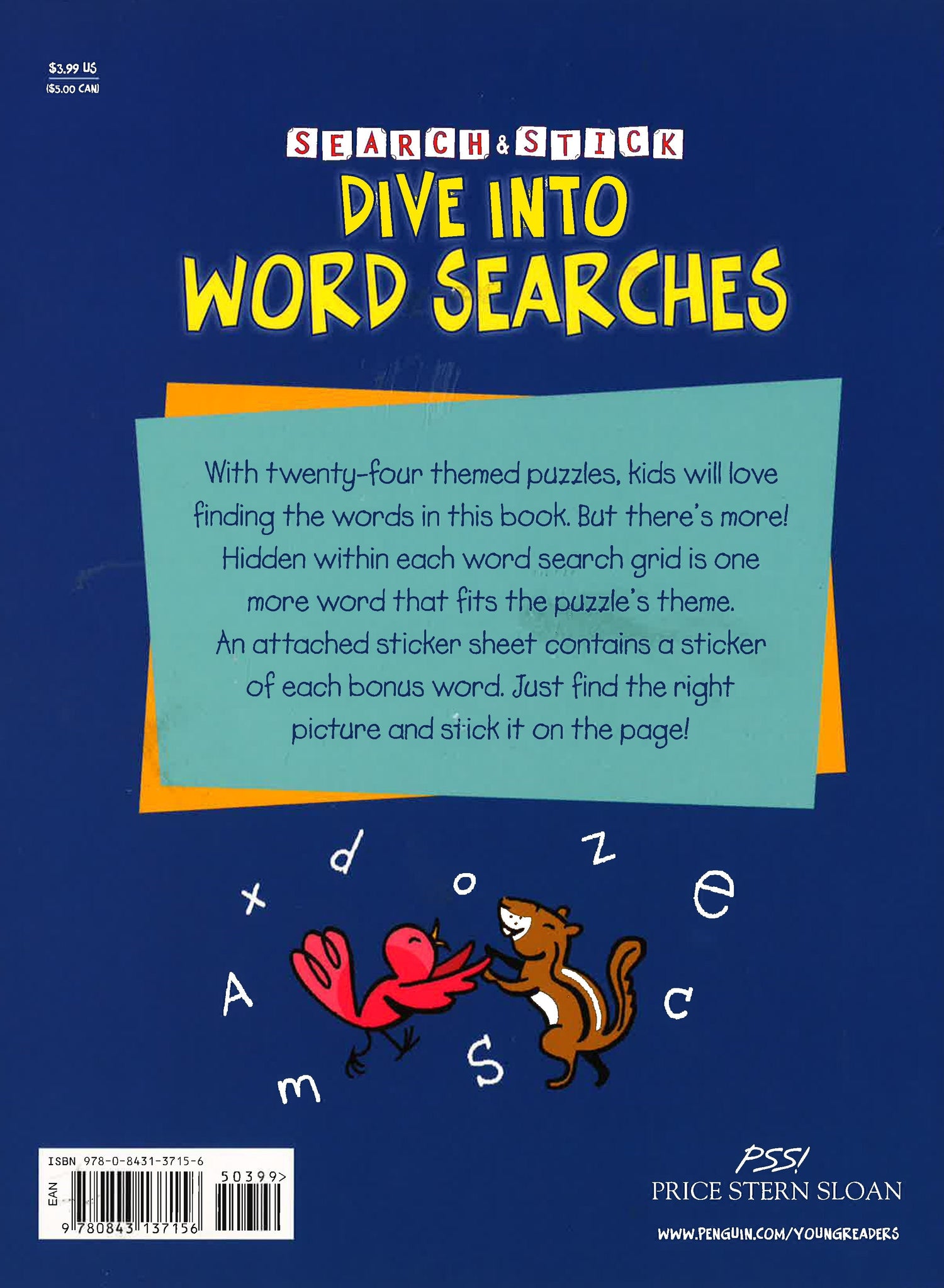 Kids will love solving the twenty-four word search puzzles in this book, and there's an added bonus! The unused letters in each grid contain a hidden word that matches the puzzle's theme. An attached sticker sheet contains illustrations of each hidden word. Just find the matching sticker and put it on the right page. Solving a word search has never been so much fun!