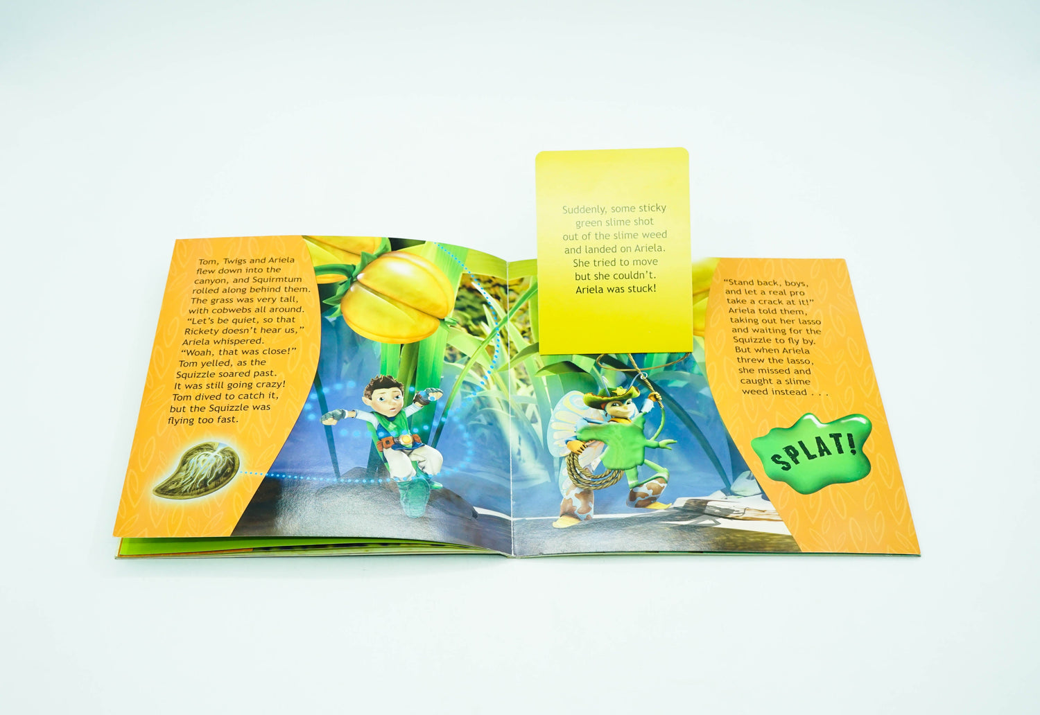 When Tom and his friends play a game of Squizzle, Twigs attempts a tricky move that sends his Squizzle pod soaring - straight into a deep, dark canyon! It's said that an oh-so-scary spider lives down there, and Twigs is worried that he'll never get his Squizzle back. But Tom isn't afraid of spiders - much! - especially when he has Big World magic to help him . . .