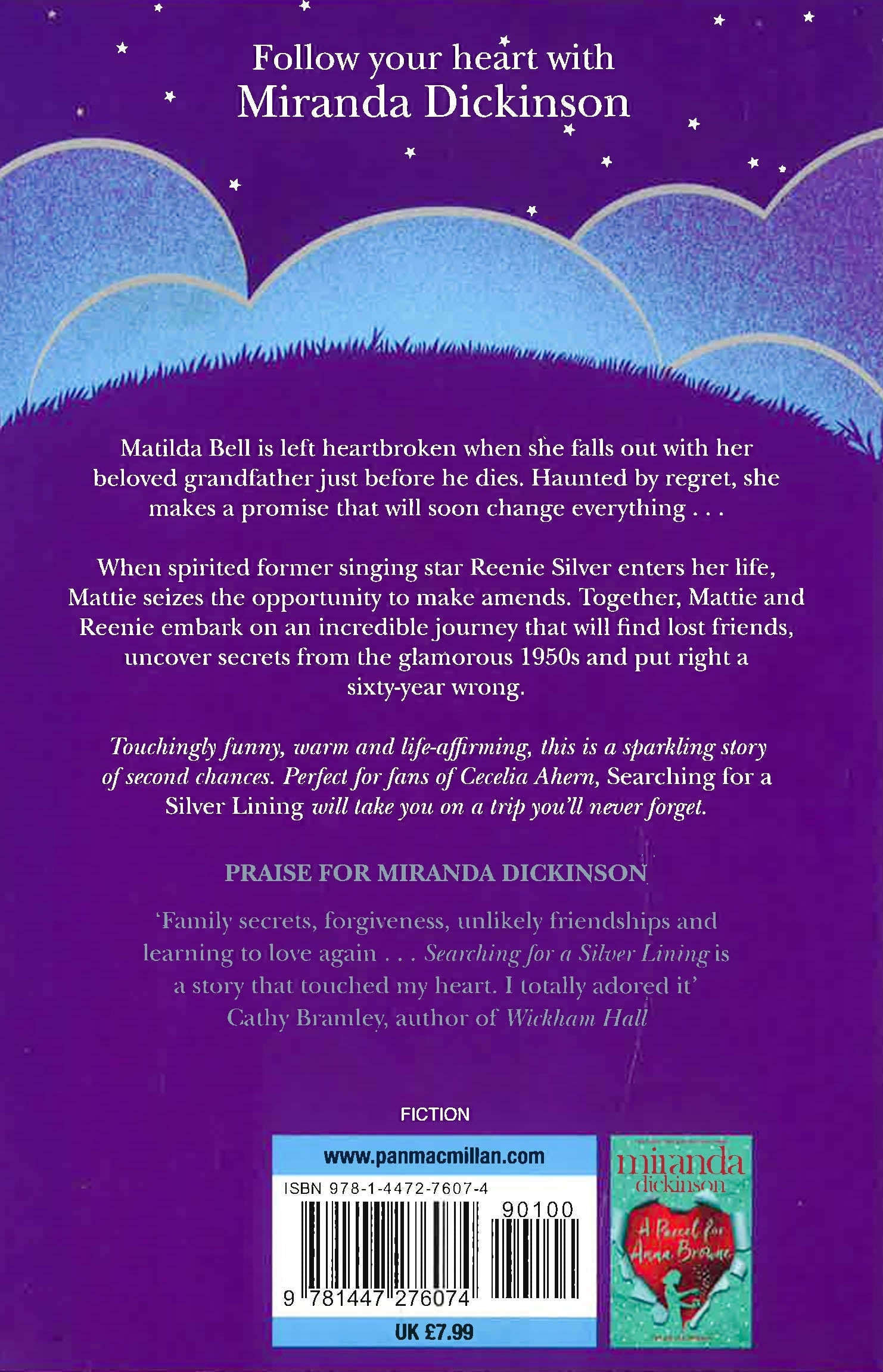 Both heartbreaking and affirming, Miranda Dickinson's Searching for a Silver Lining is perfect for fans of Cecilia Ahern and JoJo Moyes.