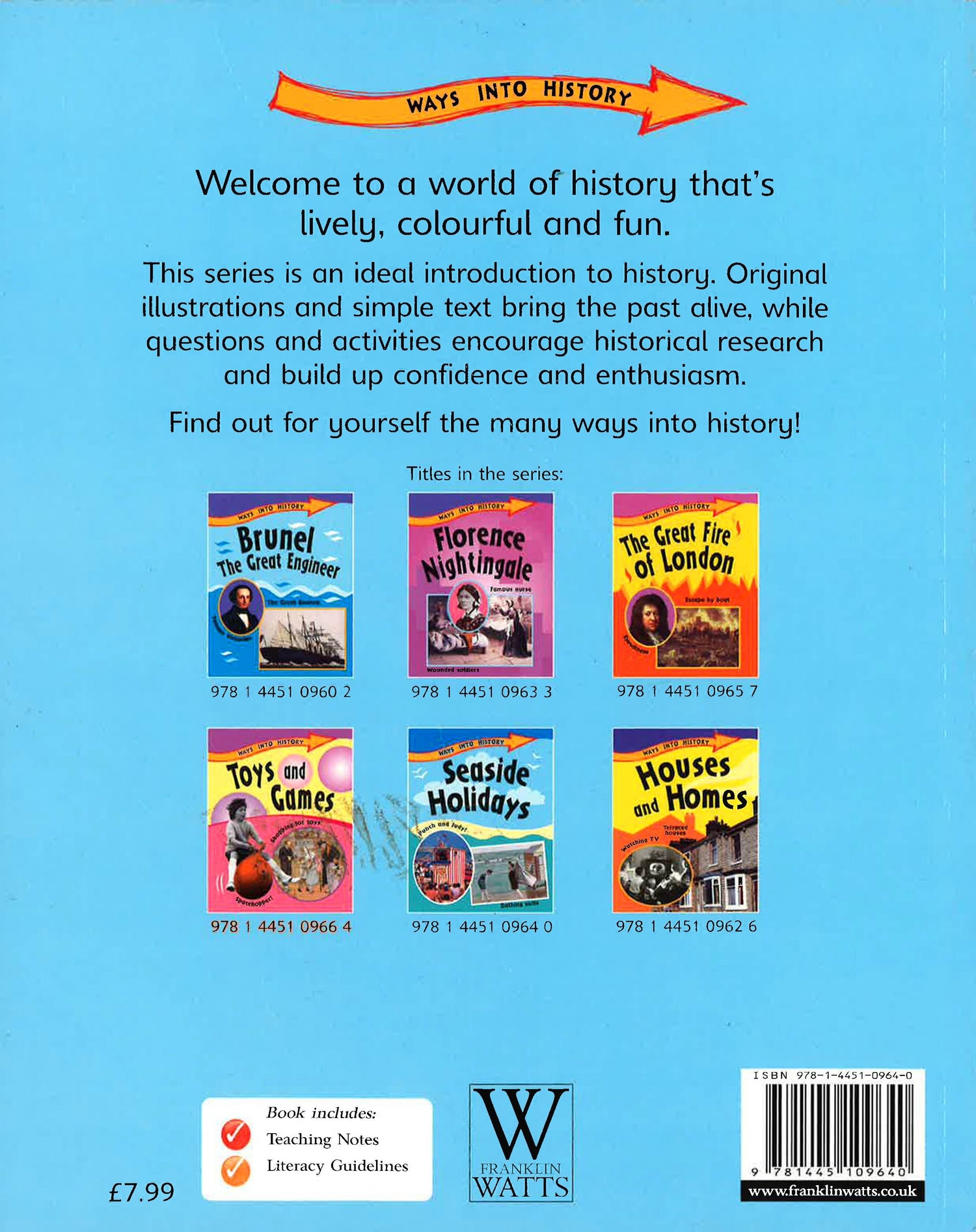 Ways into History: Florence Nightingale tells the story of the famous nurse and her battle to make nursing a respected profession. It also looks at why we remember Florence Nightingale today. It includes a timeline of key events, buildings and inventions that changed holidays over the years at the back of the book. In the Ways into History series, original illustrations and simple text bring the past alive, while questions and activities encourage historical research and build up confidence and enthusiasm. The series encourages Key Stage 1 readers aged 5+ to begin to think like a historian and look for clues in descriptions and pictures that will help them answer questions about the past. The books include 'Talk About' sections that encourage readers to describe events or what people might have thought or felt at the time. Teaching and literacy notes help teachers and parents get the most out of the curriculum links in these books in a classroom or at home.