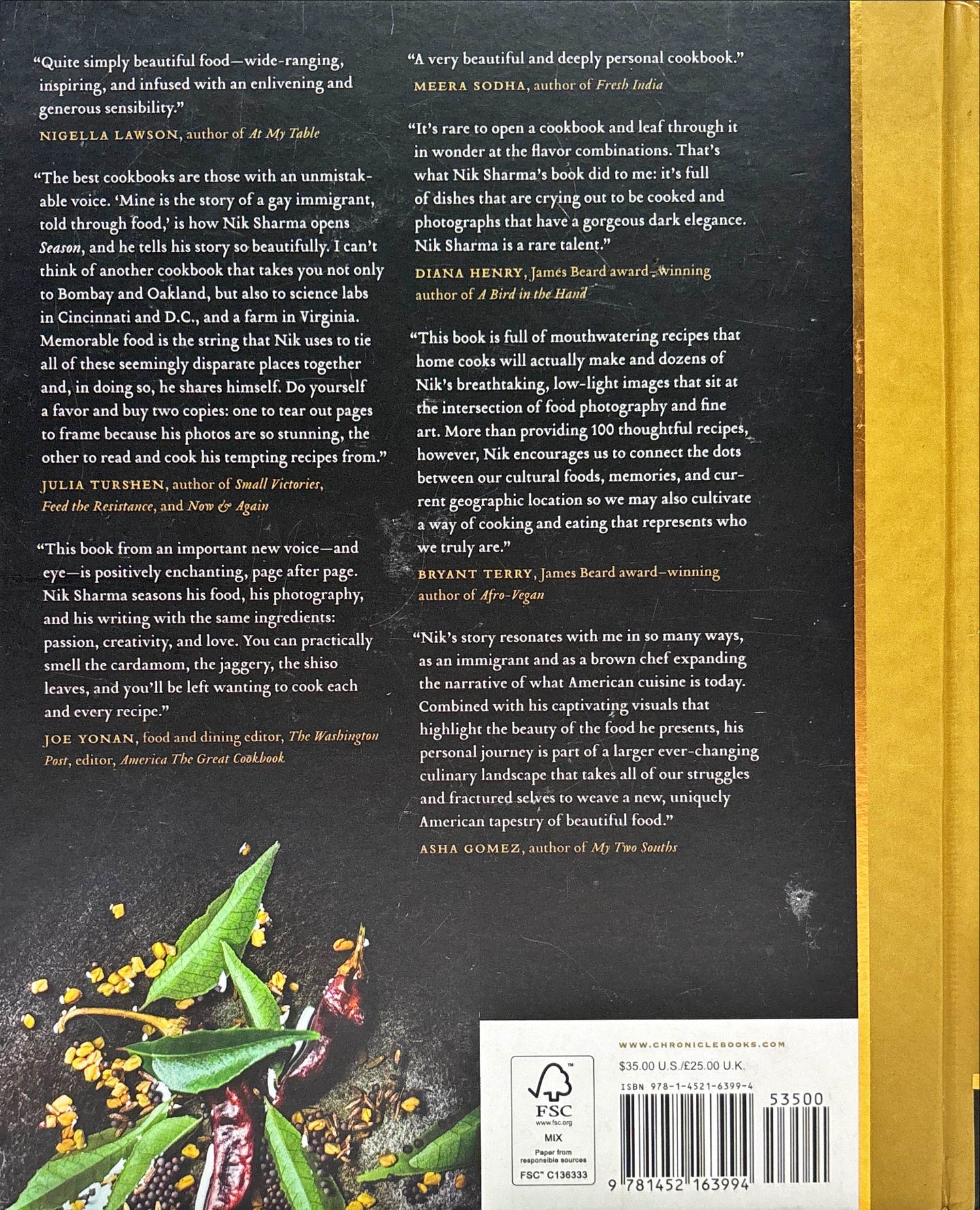 Includes 100 easy-to-cook and delicious recipes: Season by Nik Sharma features delicious and intriguing recipes plus 270 of the most beautiful photographs ever seen in a cookbook. The bold flavors of Indian cooking combine with familiar ingredients and recipes of the American South and California in fresh ways. Rest assured there is nothing intimidating here. Season, like Nik, welcomes everyone to the table!