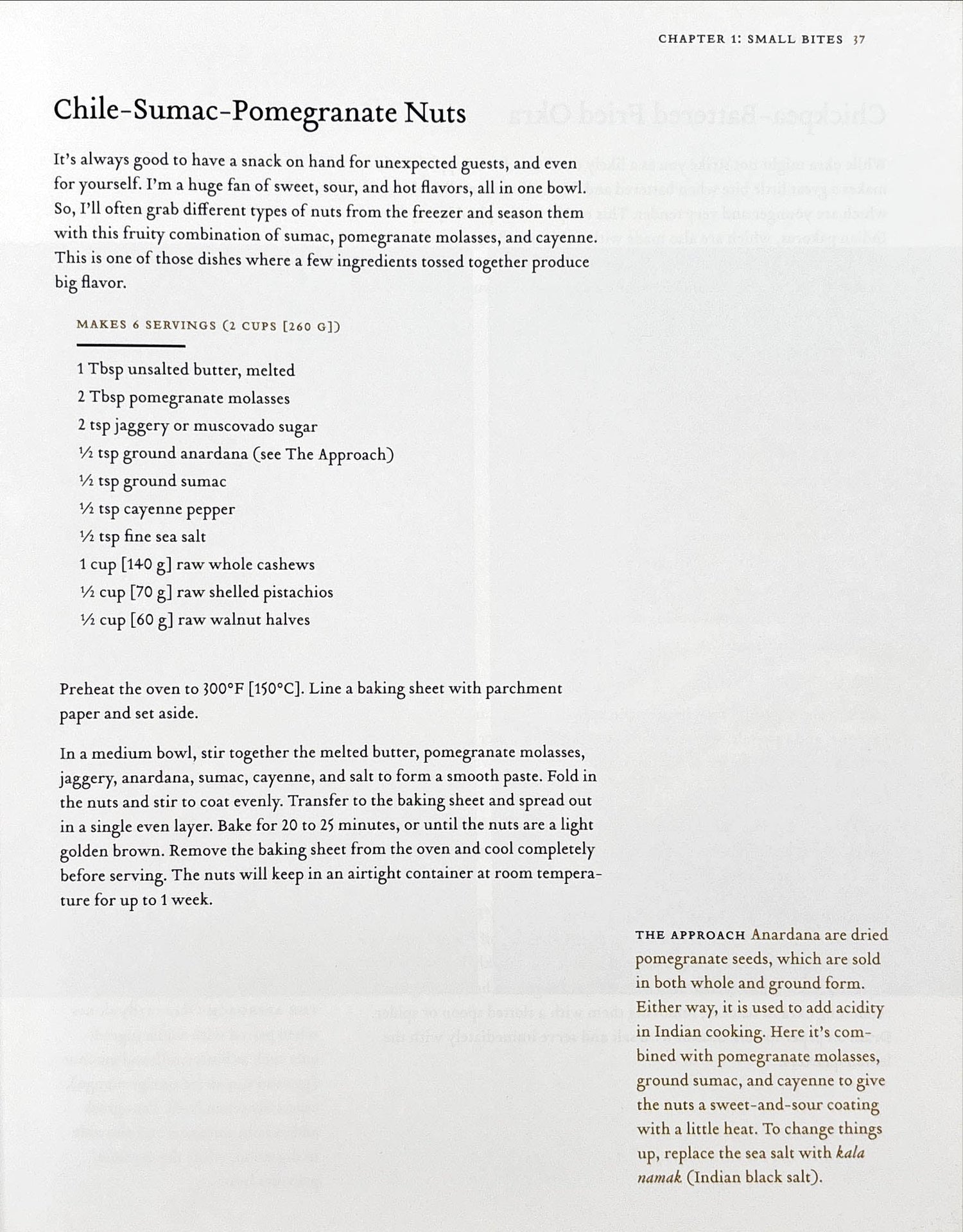 Intriguing and easy recipes include Deviled Eggs with Creamy Tahini and Za'atar, Caprese Salad with Sweet Tamarind Dressing, Steak with Orange Peel and Coriander, Roasted Young Carrots with Sesame, Chili, and Nori, Chat Masala-Grilled Pork Chops, Spicy Chocolate Chip-Hazelnut Cookies, Apple Masala Chai Cake, Pomegranate Moscow Mule, and many more.